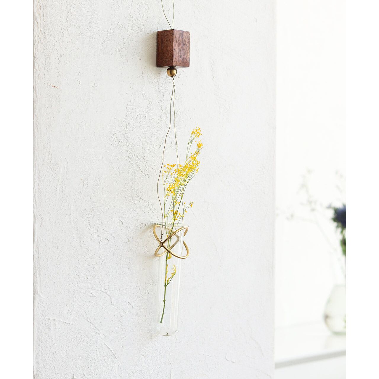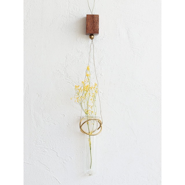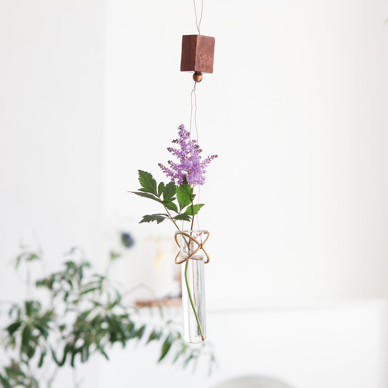 試験管の形をしたガラスベースをアイアンのホルダーにセットしたハンギングベース。