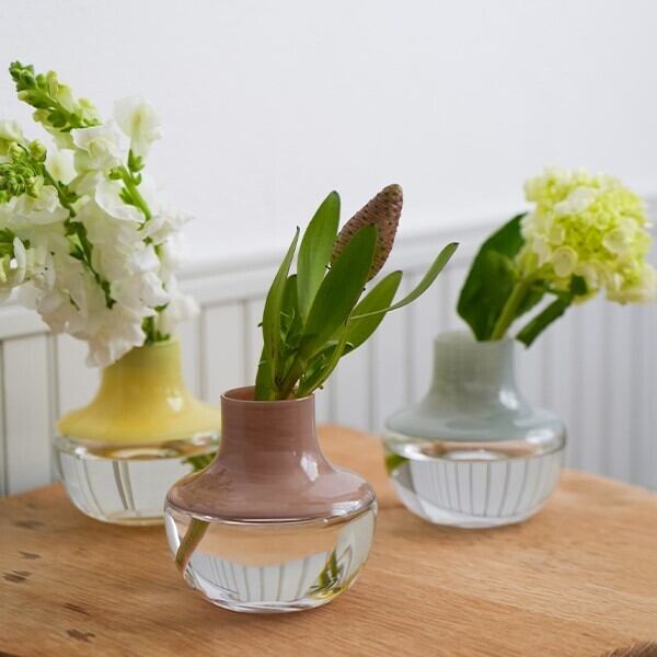 ツートンカラーが目を引くコンパクトなガラスベース。