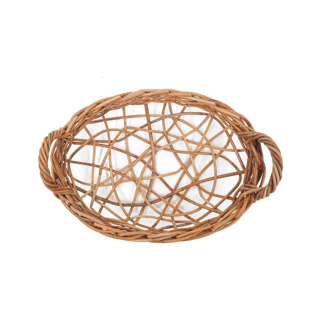 ランダムに編まれた様子が 巣のような浅型のバスケットです。
