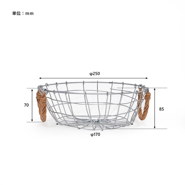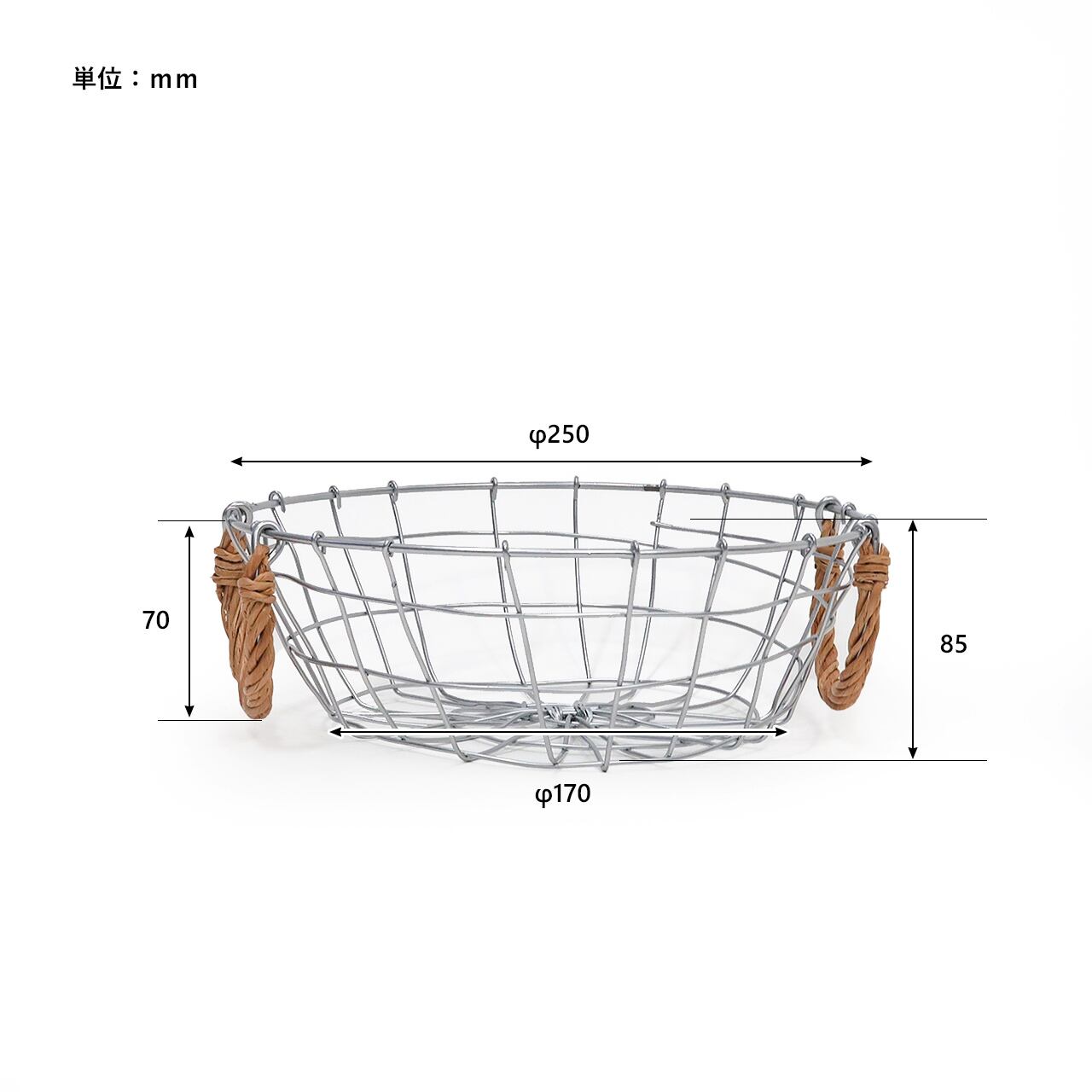 天然素材の柳ハンドルがアクセントになったワイヤーバスケット。