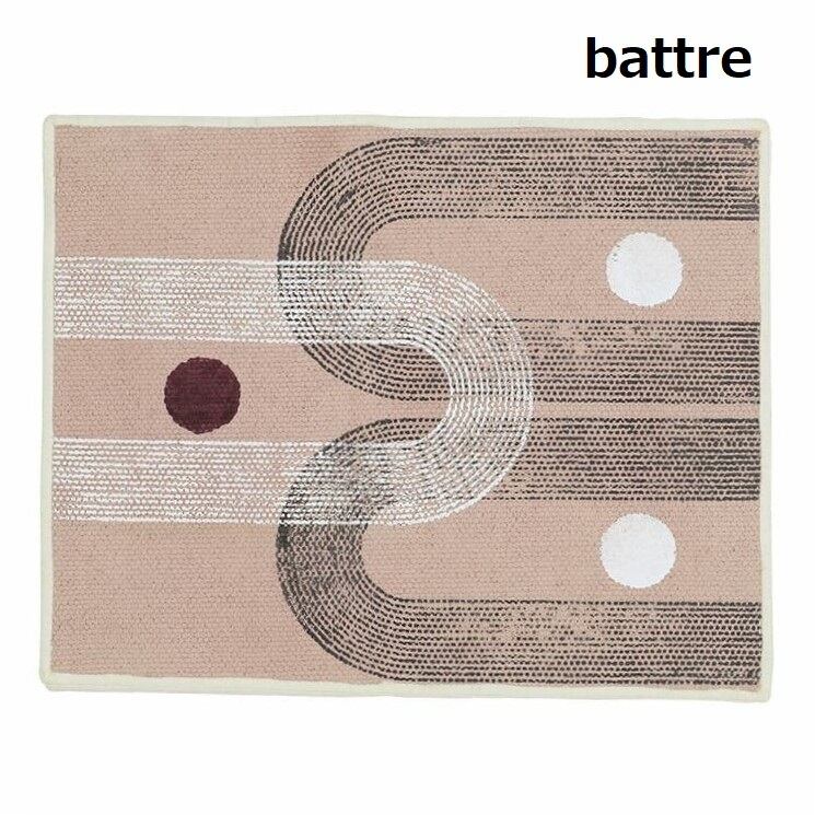 ※洗濯は手押し洗いをおすすめします。コーヒーなどの色付きの汚れ等は、中性洗剤をぬるま湯で希釈したものを布に含ませて叩く様に吸着させて、その後に乾いた布で叩いて乾燥させてください。取れにくい汚れはこの作業を繰り返し行ってください。この際、多少の色落ちが起こる可能性がございます。アイロンの使用は避けて下さい。塩素系および酸素系漂白剤の使用は避けて下さい。設置面の材質によっては、一定の場所に敷いたままにしますと設置面に形状や模様の跡が着いたりすることがあります。直射日光やライトに長時間照らされると、変色する場合があります。使用している染料が色落ちする場合があります。強い摩擦は避けてください。湿ったり濡れたりすると特に、色落ちしやすくなりますのでご注意下さい。繊維の特性上、毛抜けする場合がございます。天然素材を使い手作りで生産されていますので、織りに隙間やほつれがある部分もございます。生産工程上のものになりますので、予めご了承下さい。裏側に生産工程上のシミがある場合がございます。表記されている素材以外の繊維が混ざっている可能性がございます。ハンドメイドの為、風合いやサイズには個体差がございます。素材の特性上、開封直後は匂いがすることがございます。気になる場合は一度干して頂くことをおすすめします。お使いのPC画面等や光の環境によっては、掲載の画像と実際の商品とで色の見え方が異なることもございます。予めご了承ください。