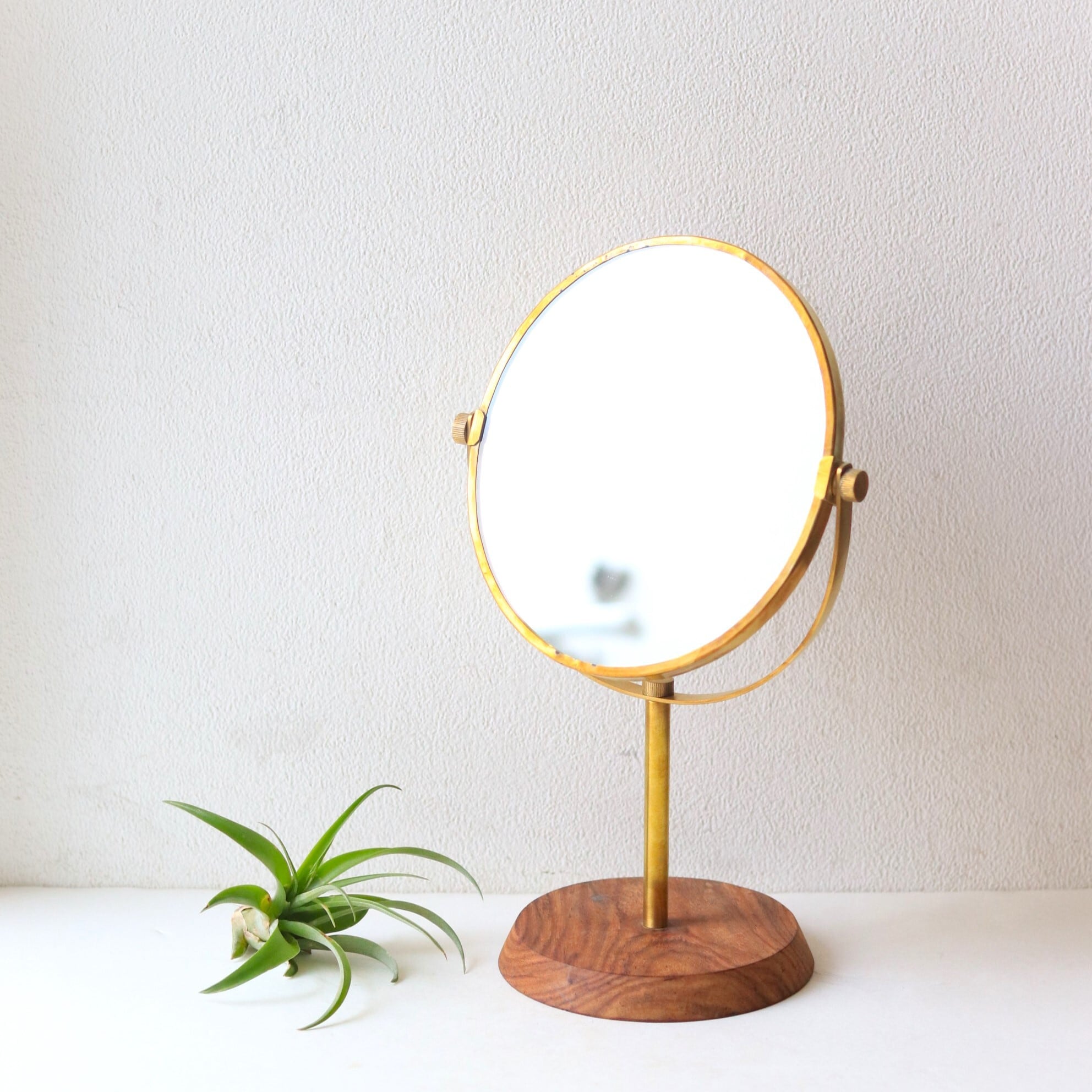 【雑貨】BRASS&WOOD デスクトップ ミラー L
