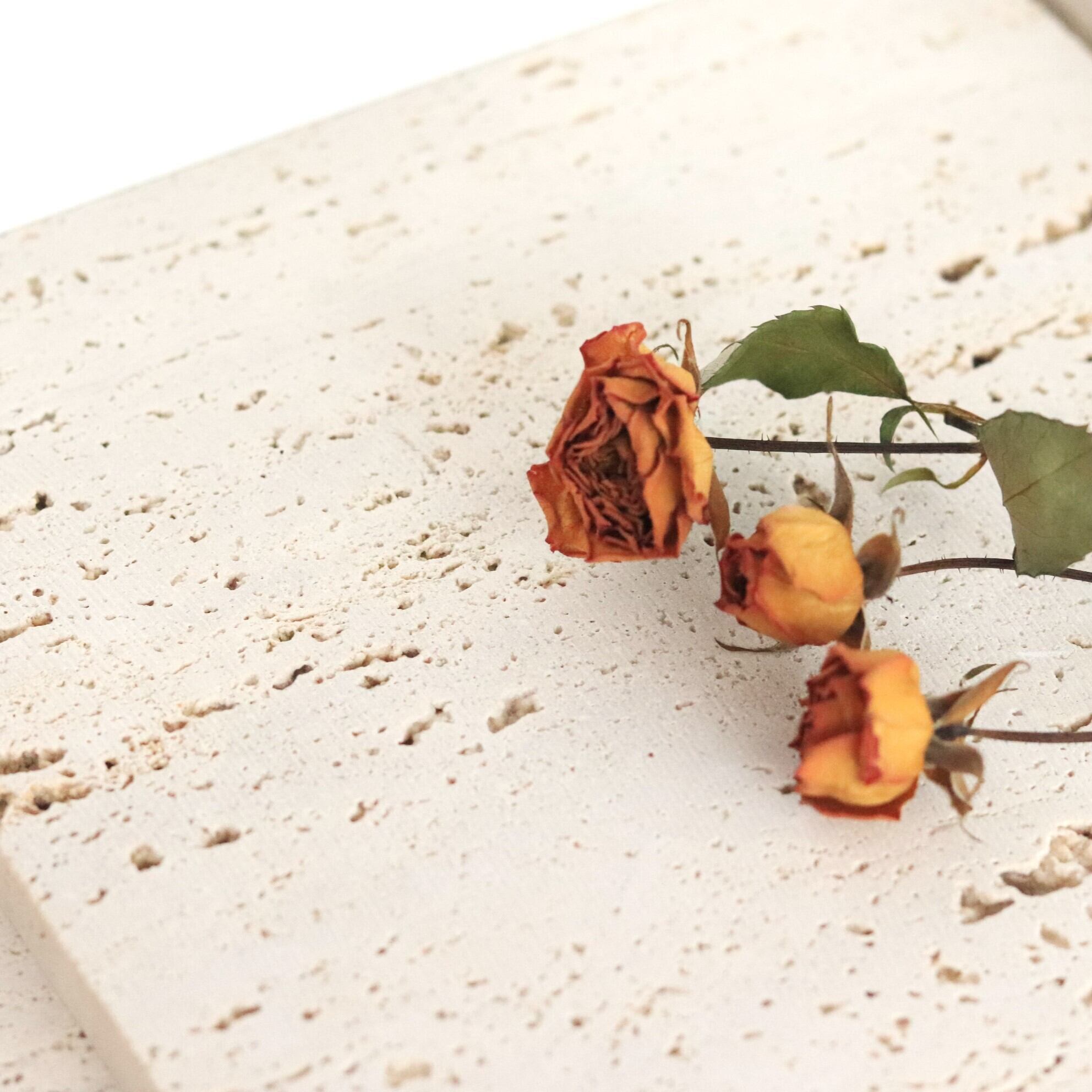 自然な風合いと優しい色合いが魅力のトラバーチンという石材のプレート。