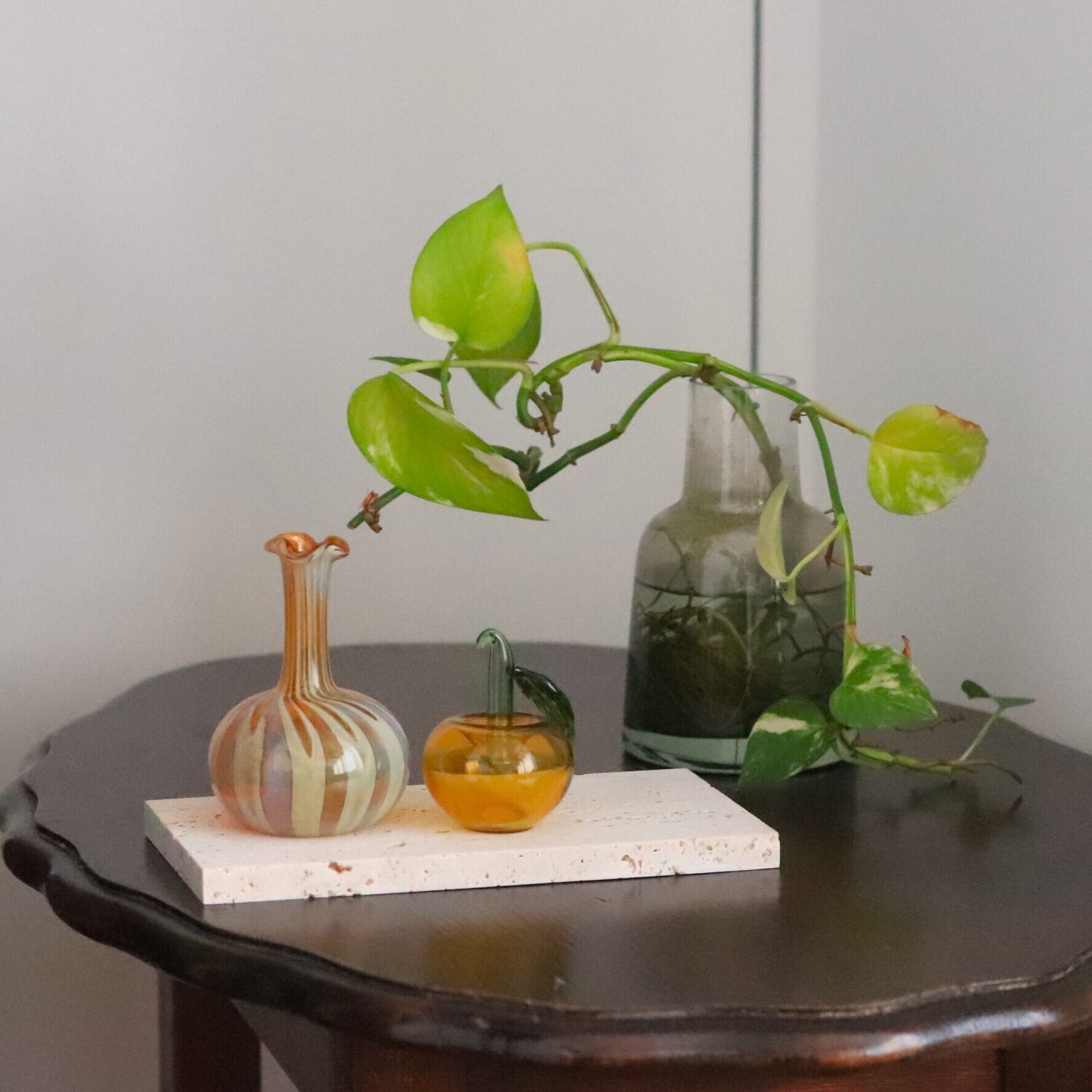 ※天然の素材を使用しているため、素材特性上、気泡・厚み・欠け・風合いの個体差が大きくございます。 予めご了承くださいませ。家具などの上でご使用になる場合は、傷などをつけないために付属のパッドをご利用いただくか、敷物の上に設置されることをおすすめいたします。