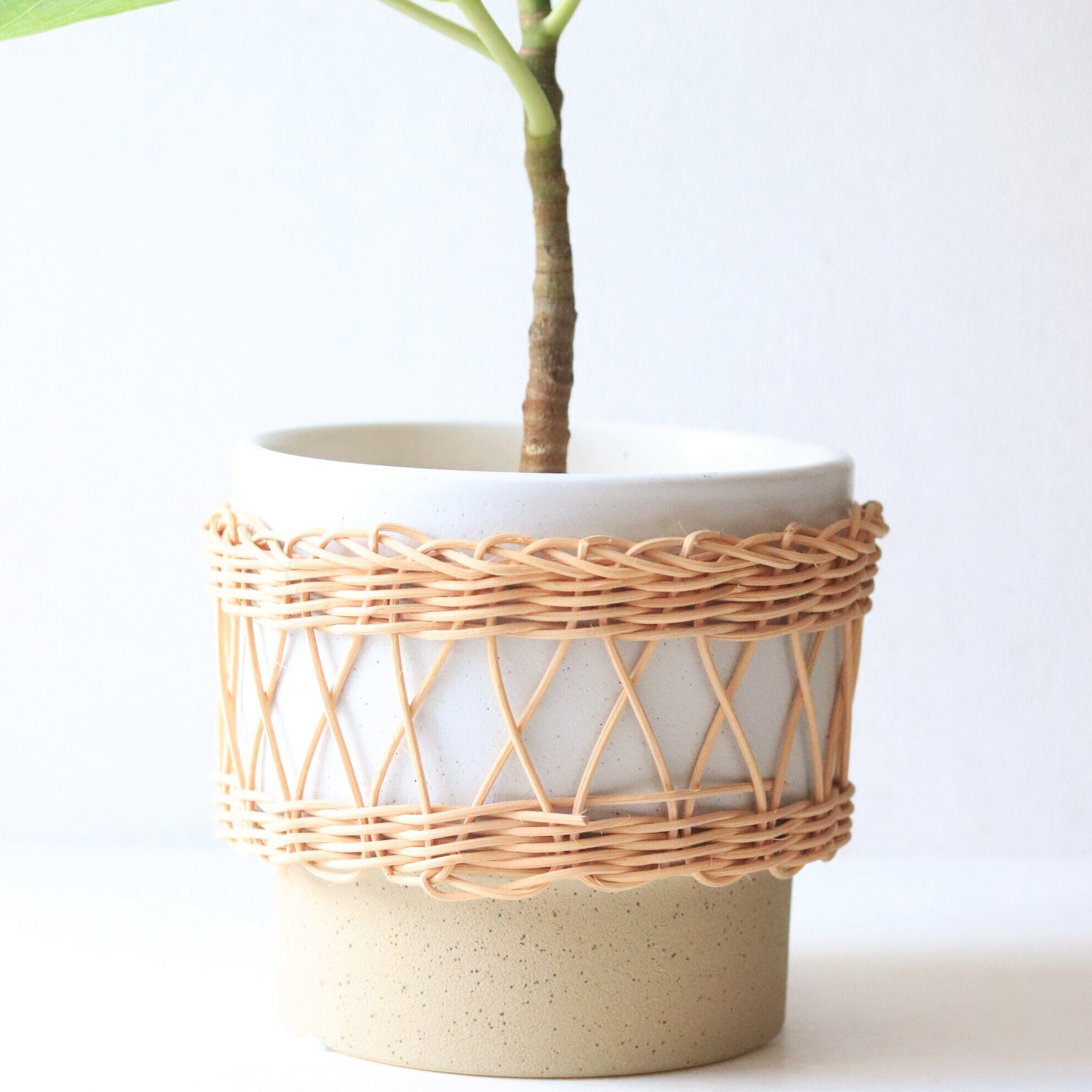 白色陶器×ラタンの鉢とのセットです。(底穴なし)
