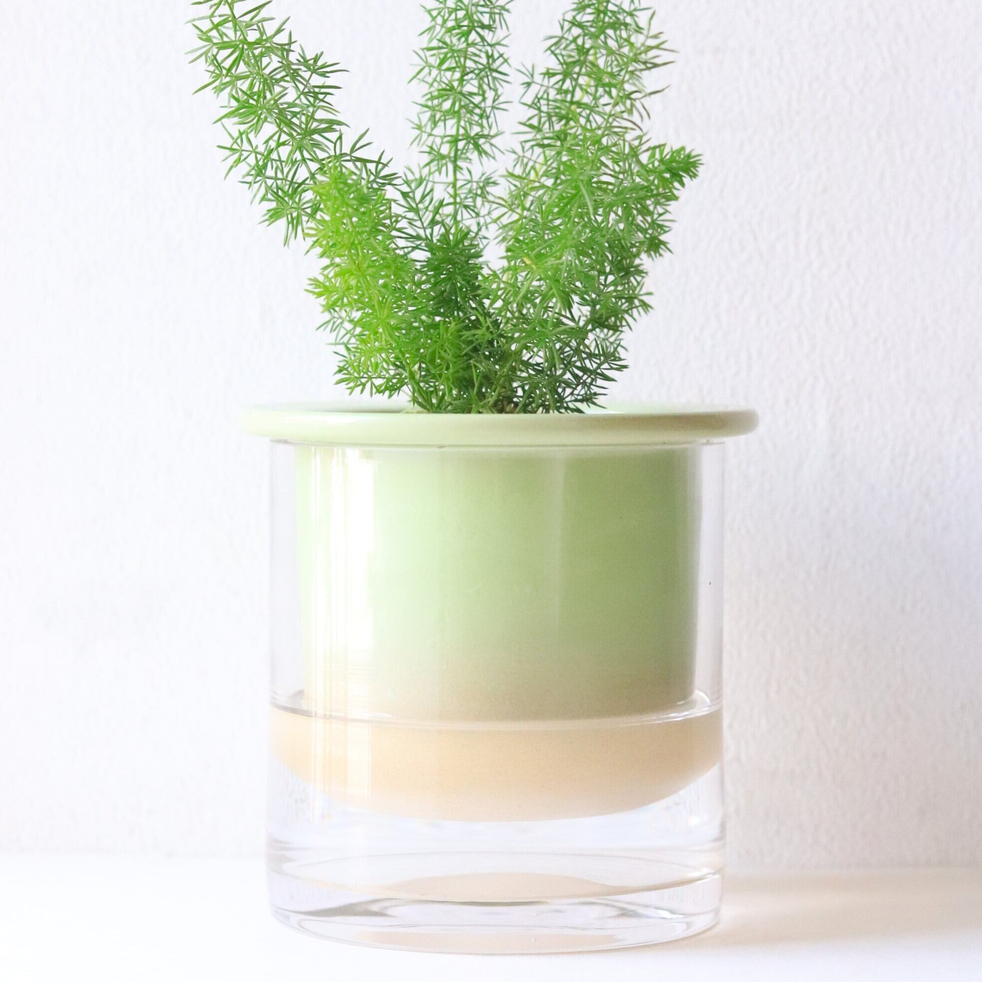 お水が減ってきたときも一目瞭然、管理しやすい、底面吸水鉢とセットです。