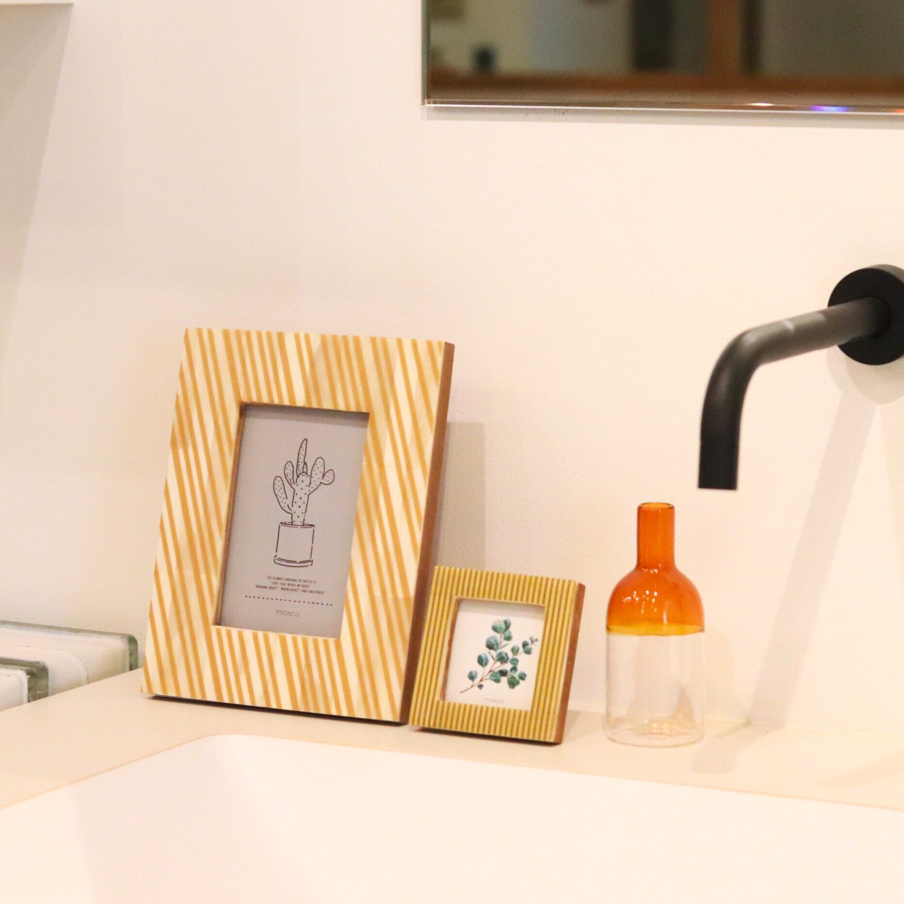 置いておくだけでお部屋が明るくなるような元気になる色味のフォトフレームです。