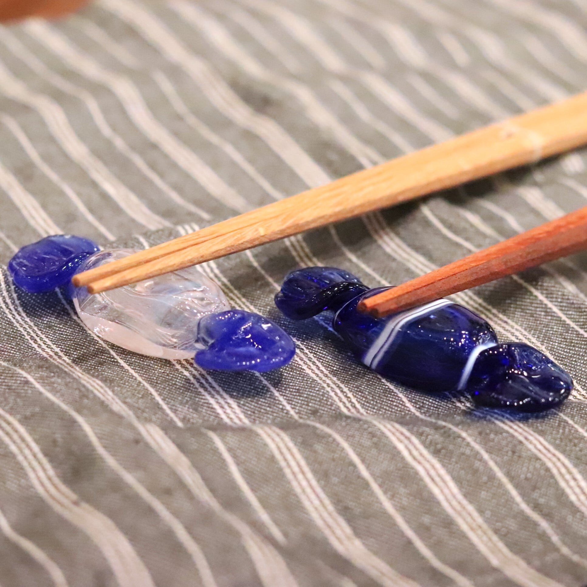 透明感のある厚みと愛らしいキャンディ型のフォルムが魅力のハンドメイドの箸置きです。