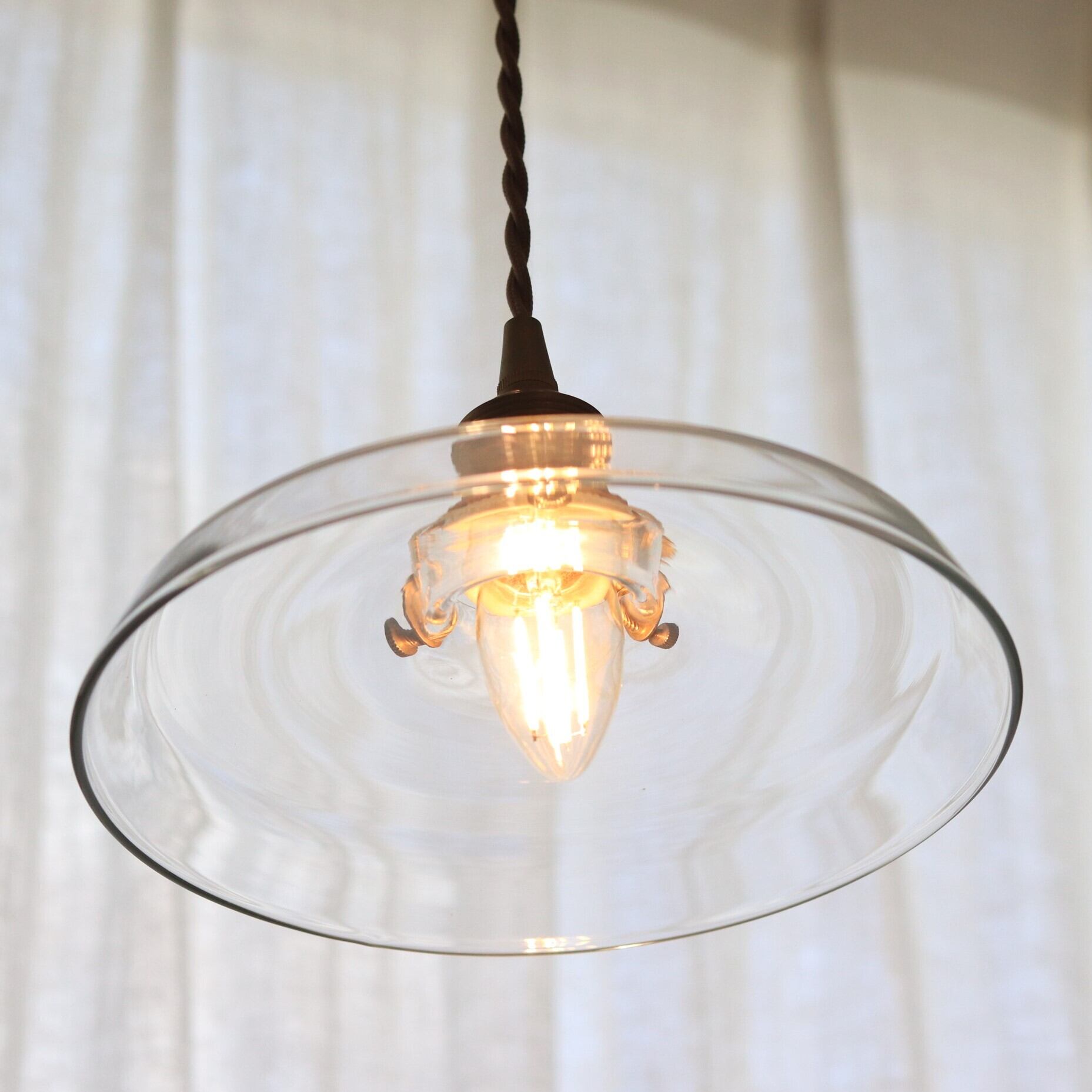 ※手作業で製造を行っている商品のため、若干の歪みや、重量の個体差等が発生する可能性があります。また製造工程上フチの部分に1箇所ガラスの溜まりが発生しますが、使用には問題ございません。あらかじめご了承ください。シェードが傾く場合は灯具の3点留め用パーツの締め具合で調整を行ってください。
