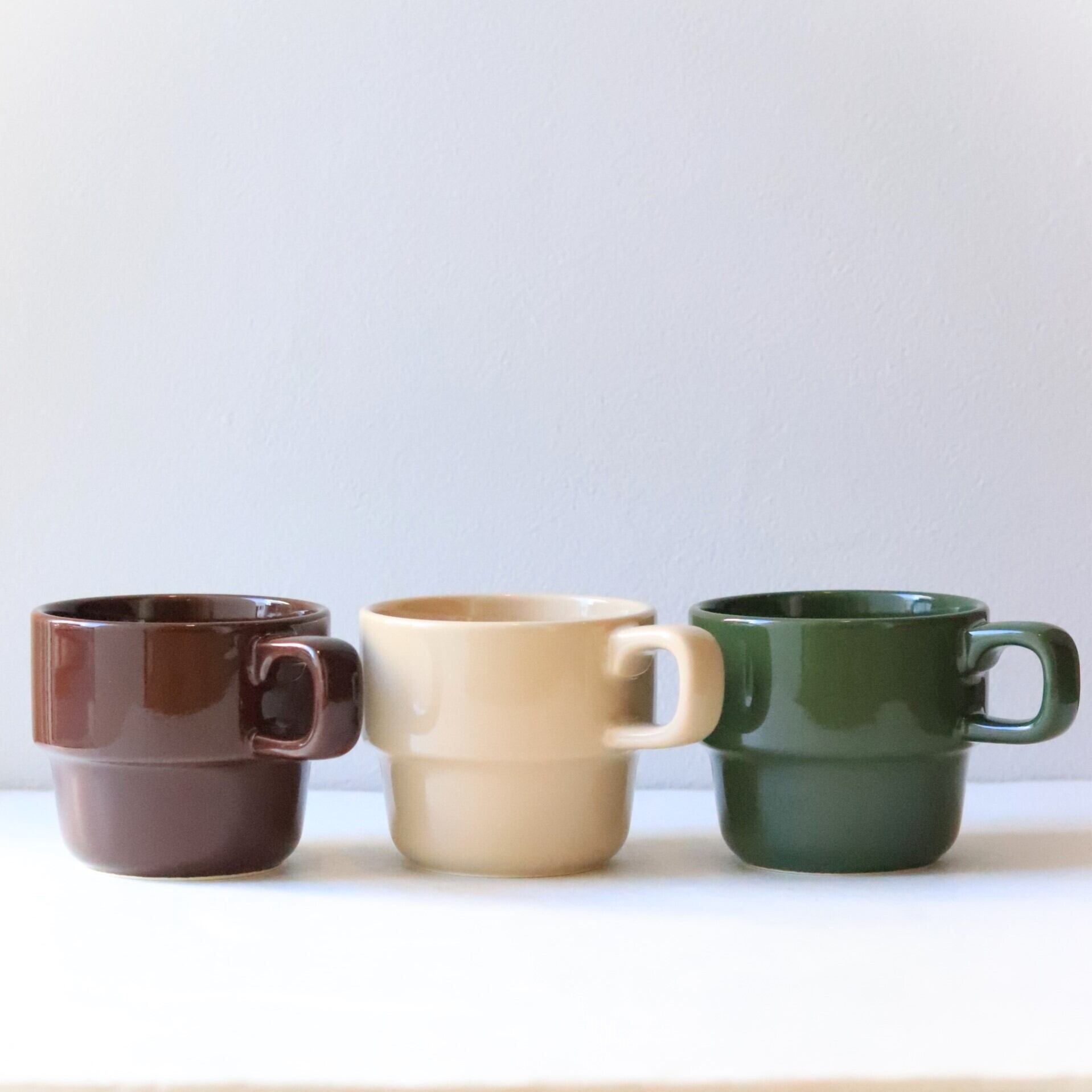 色とフォルムがどこか懐かしさを感じさせる、レトロな雰囲気のティーセット。