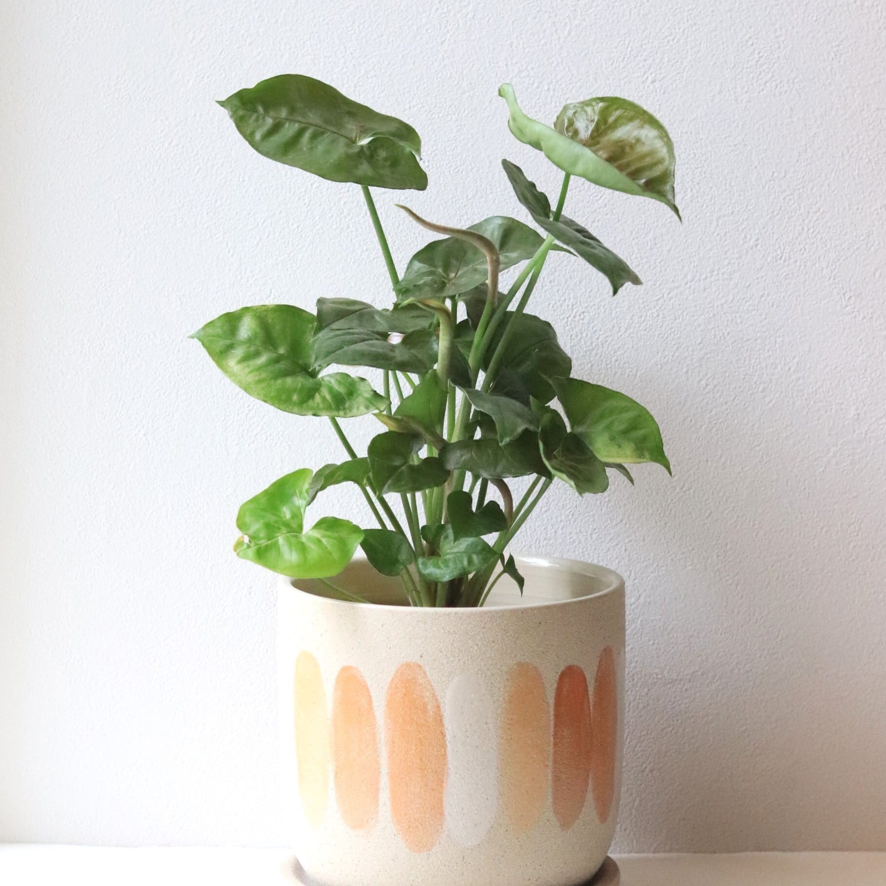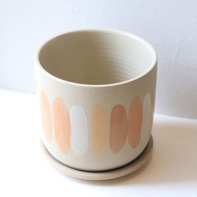 明るい配色で彩を加えた北欧風インテリアにぴったりのポットです。
