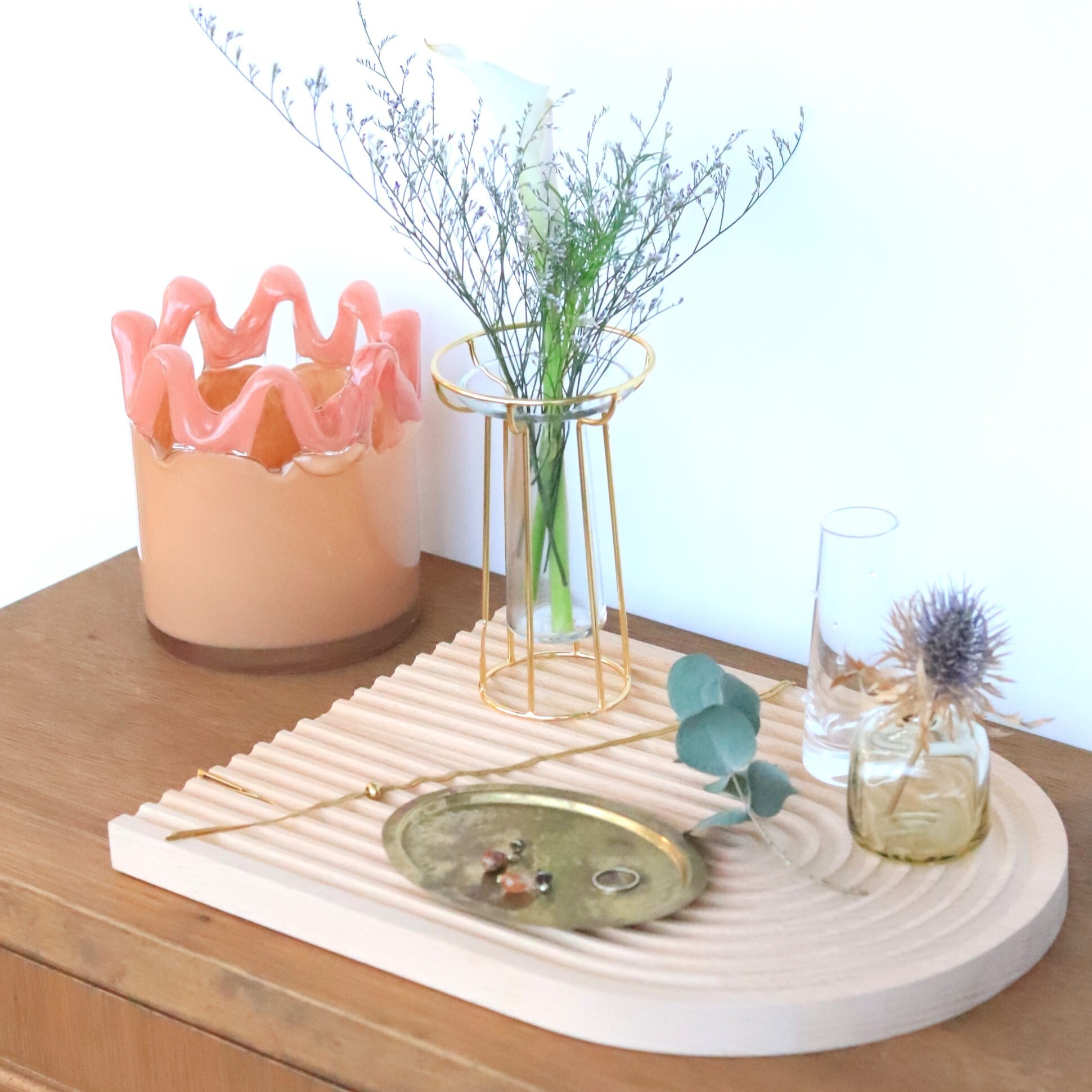 オブジェの背景に壁へ立てかけると動きが出ておしゃれな空間に♪