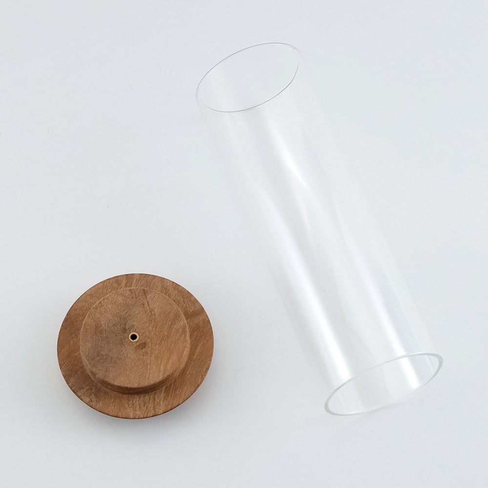 【雑貨】アカシアの香立て 灰が飛ばないガラスカバー付き