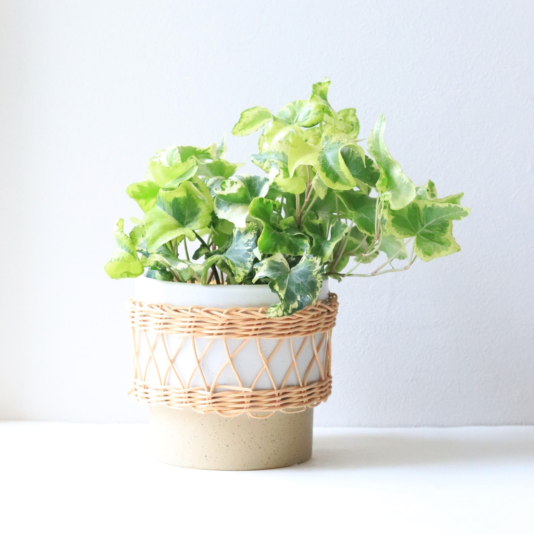 陶器×ラタンの鉢とセットです。(底穴なし)