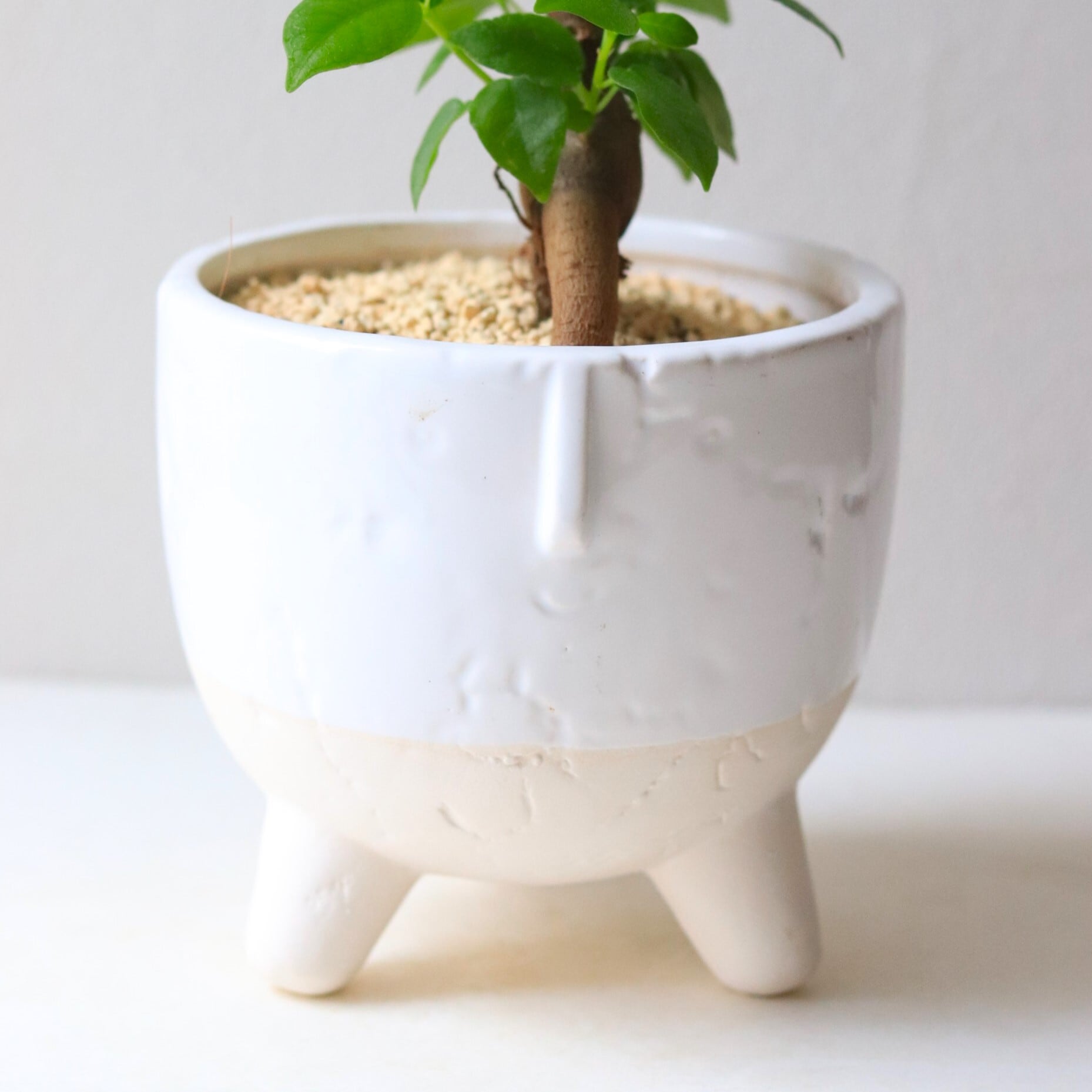 お顔をモチーフにしたユニークな鉢とセットです(底穴なし)