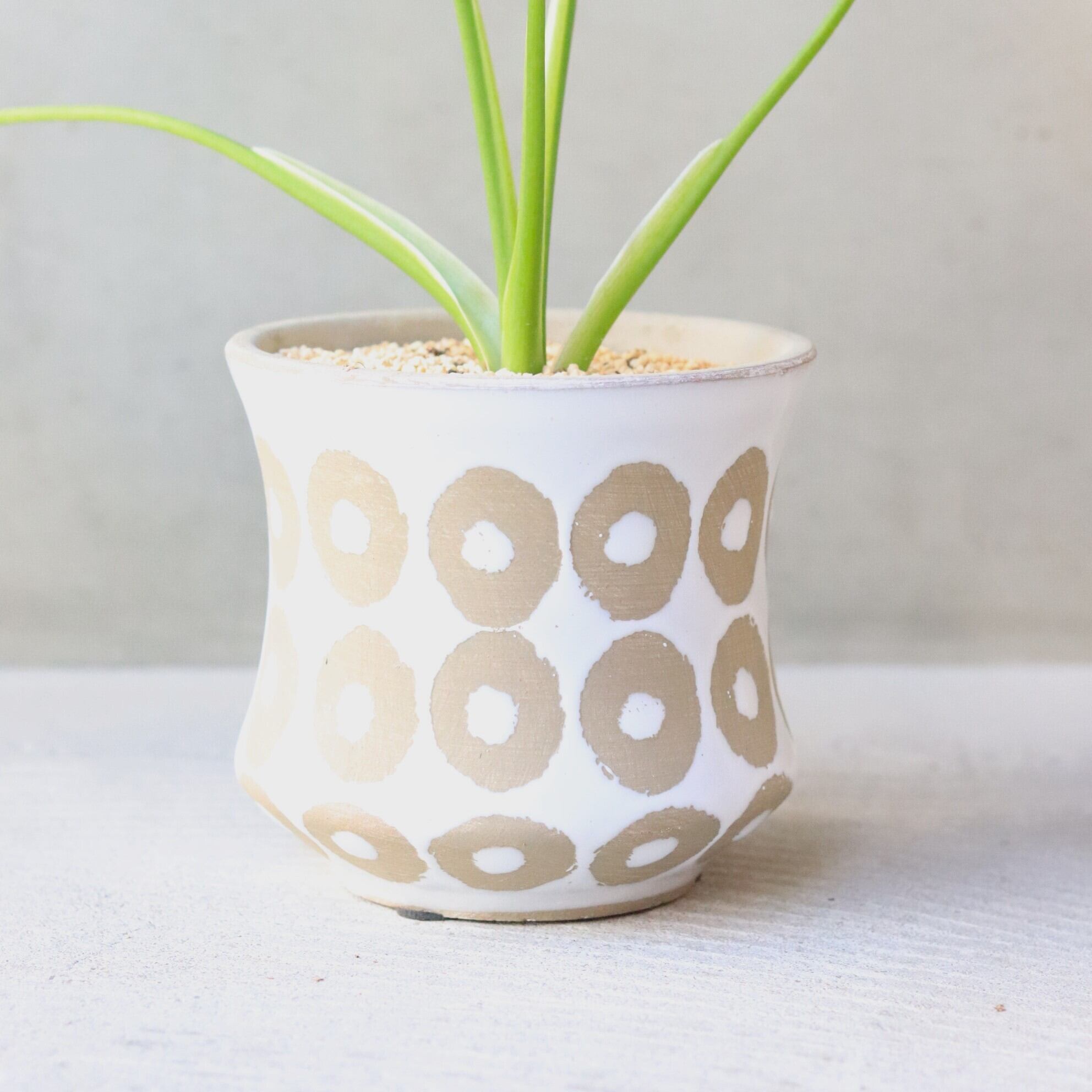 ユニークな丸模様の鉢とセットです。(下皿なし)