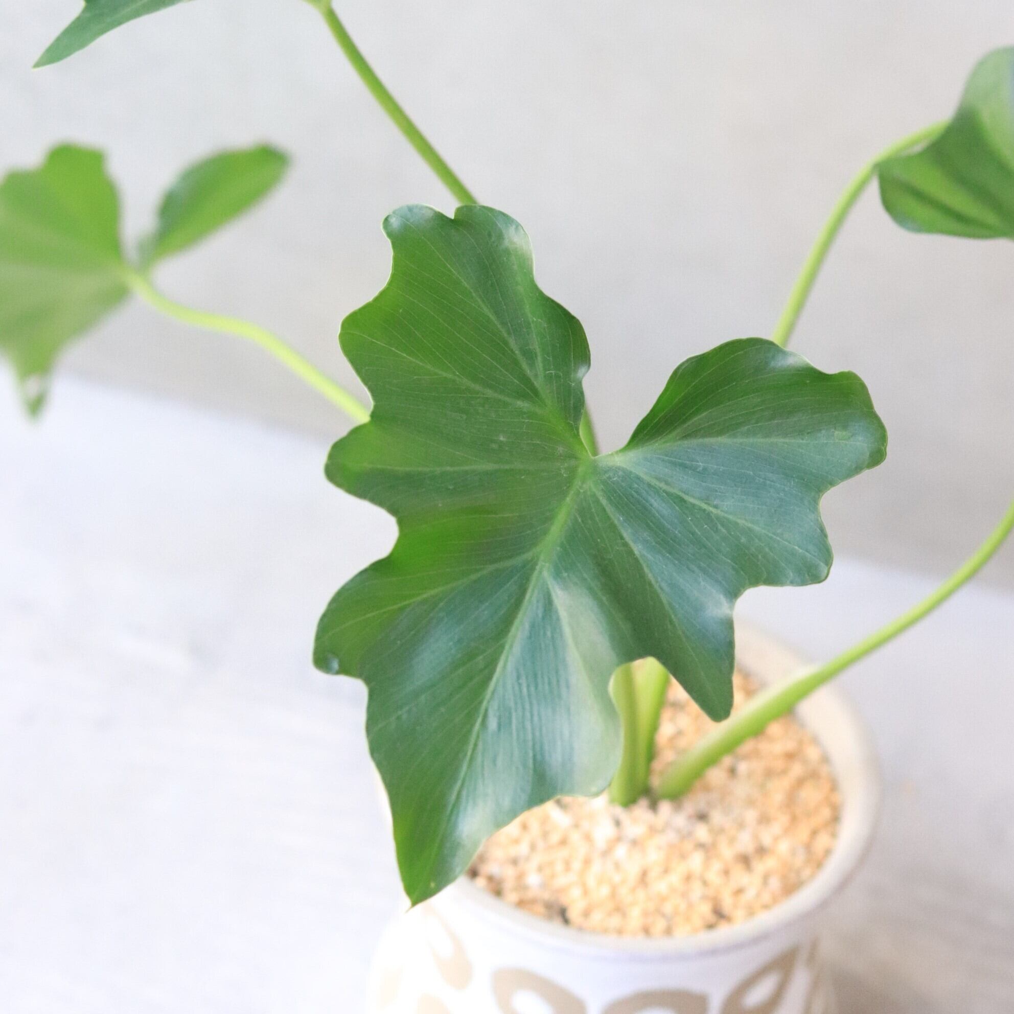 切れ込みが入った大きい葉と突起の生えた幹が魅力的な観葉植物です。