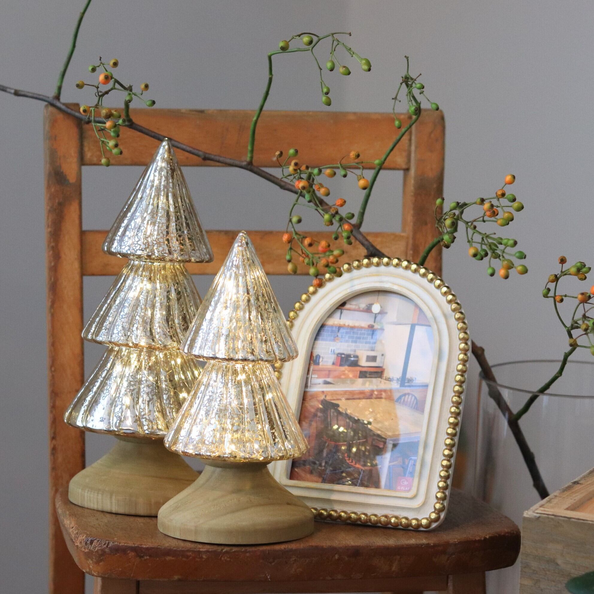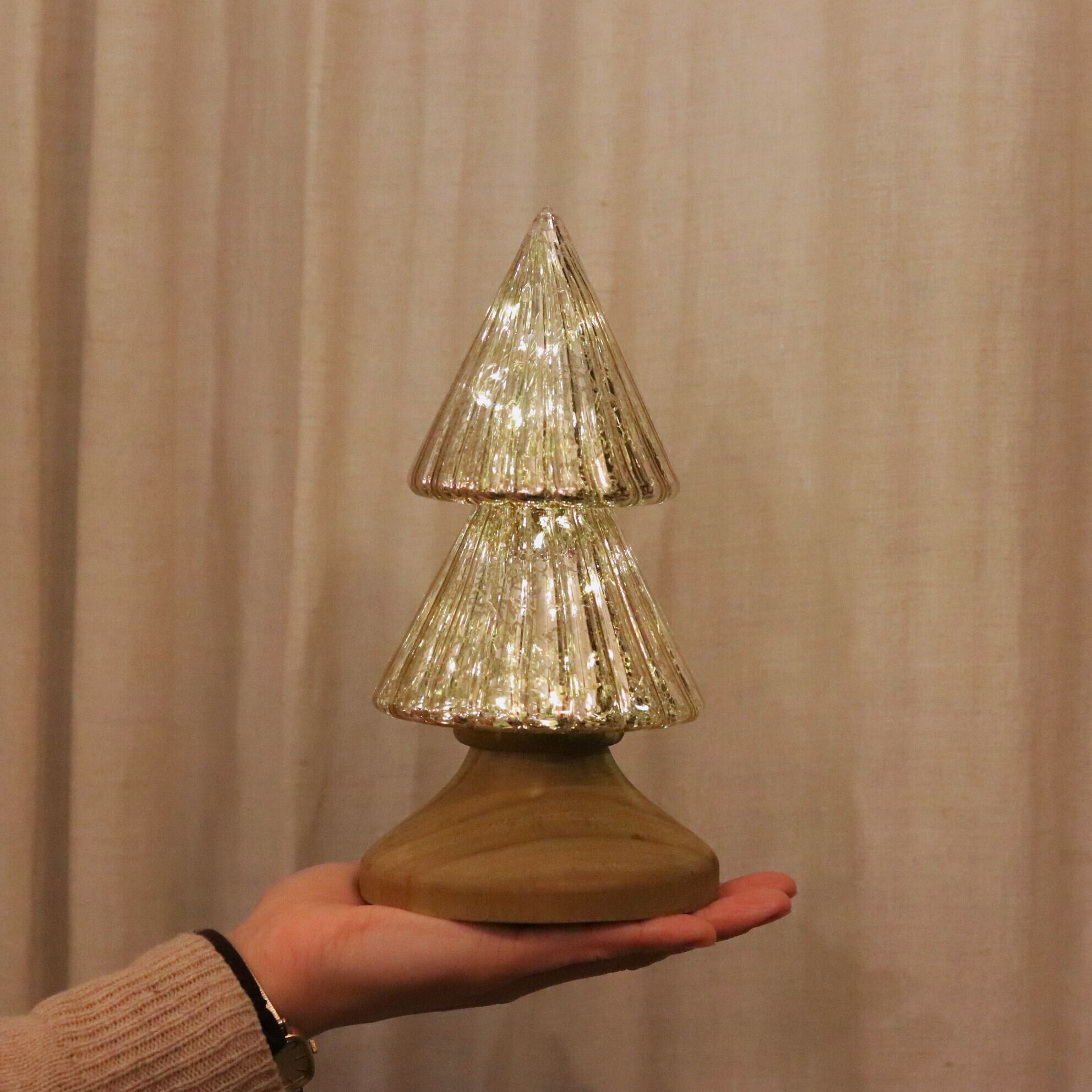 ガラスとウッドの組み合わせが美しいLEDツリー。