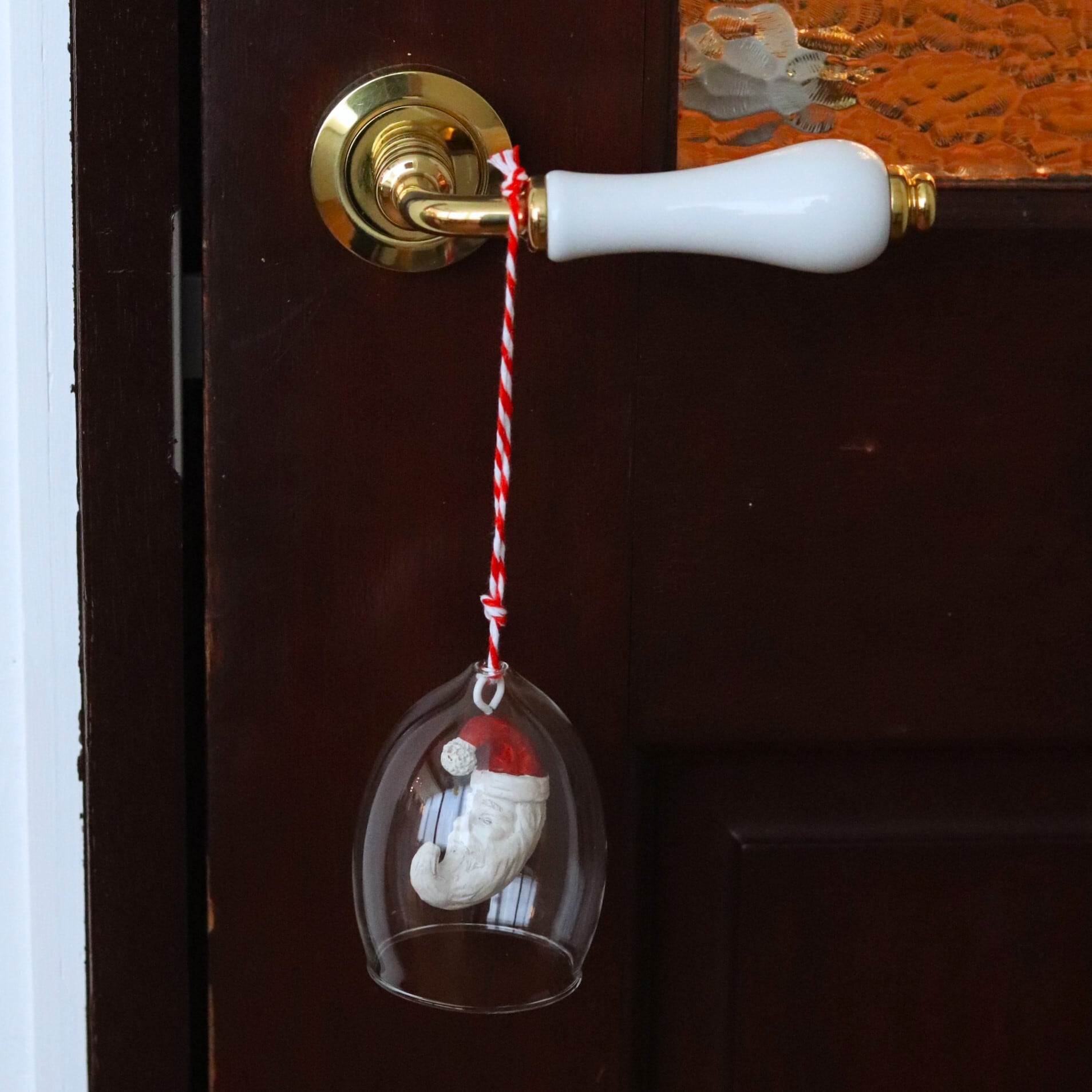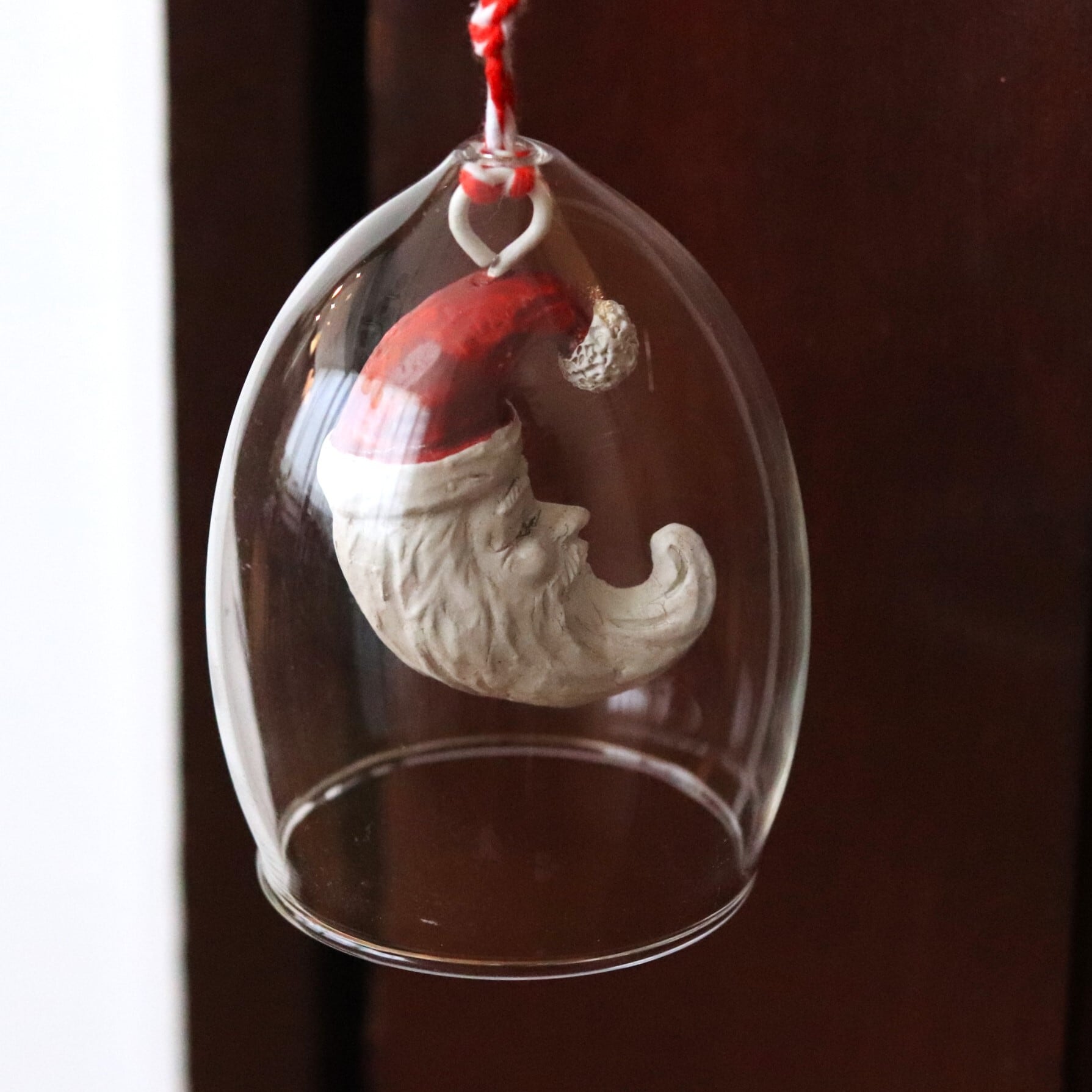 三日月モチーフのサンタクロースが揺れるユニークなオーナメント。