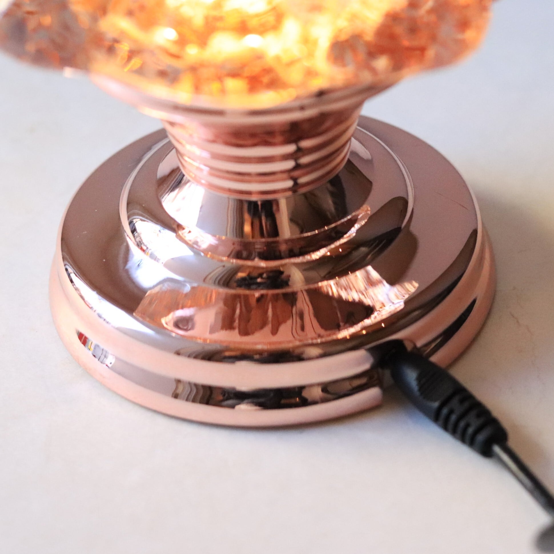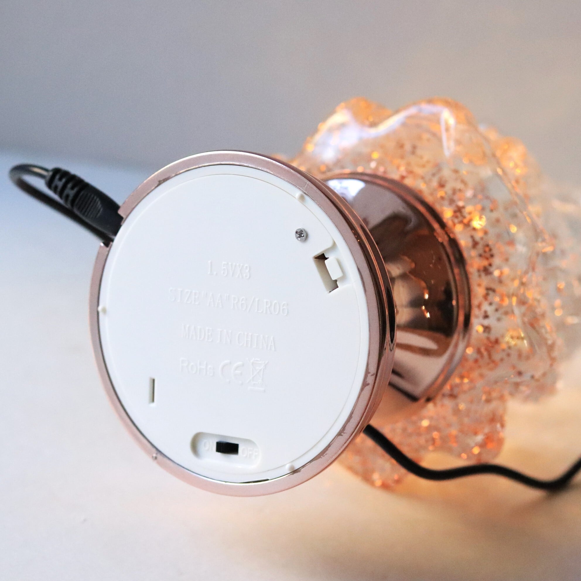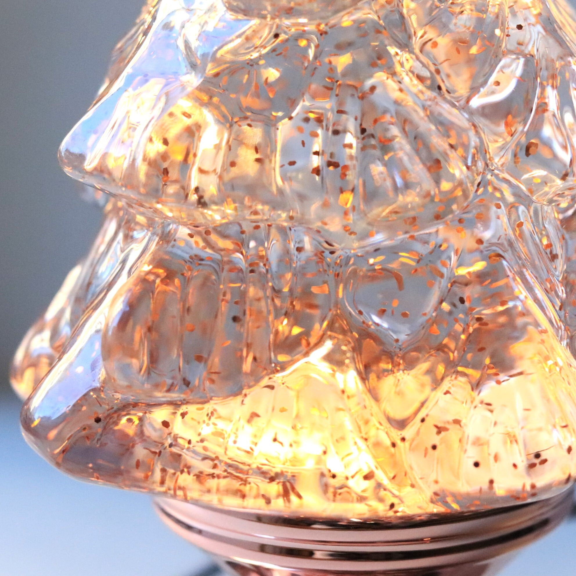 LEDの温かい光と舞い散るグリッターが幻想的な雰囲気を演出し