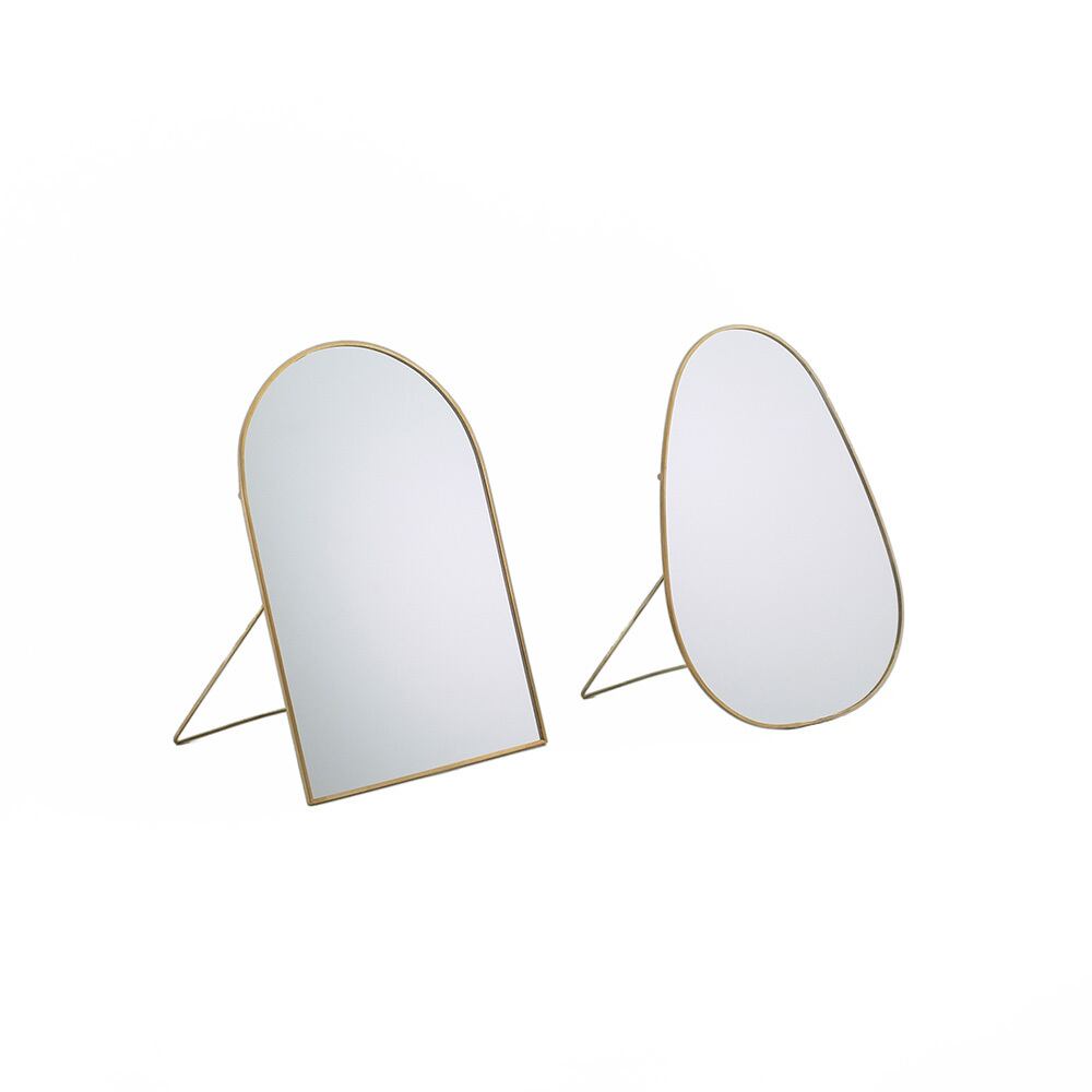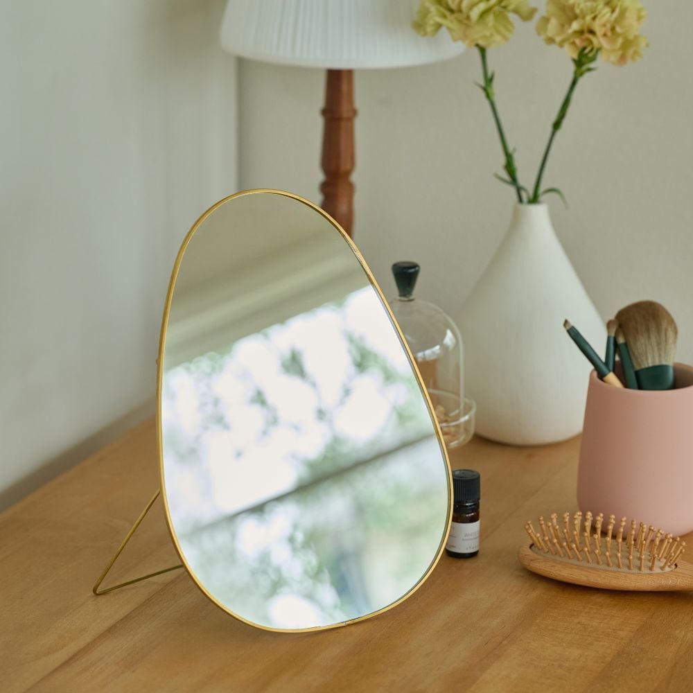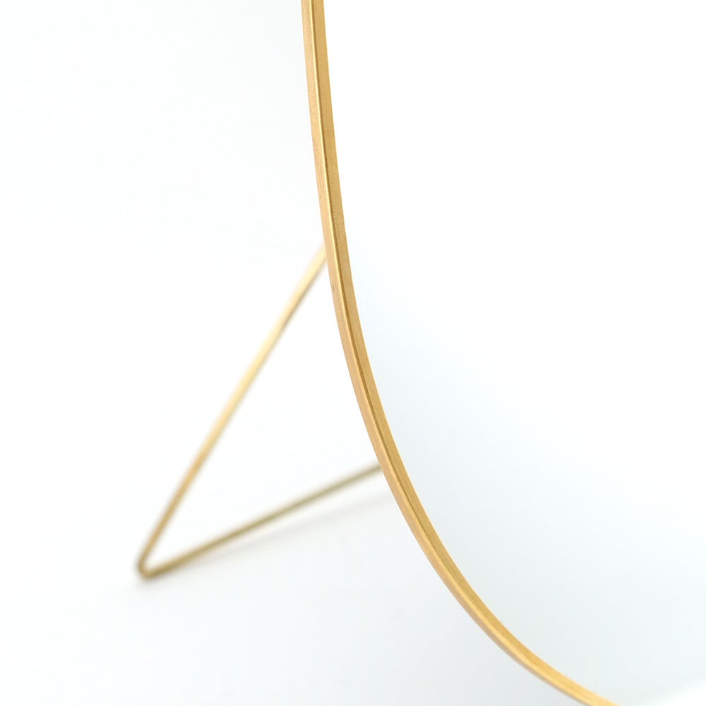 光を反射して空間に広がりをもたらす、ブラスフレームのスタンドミラー。