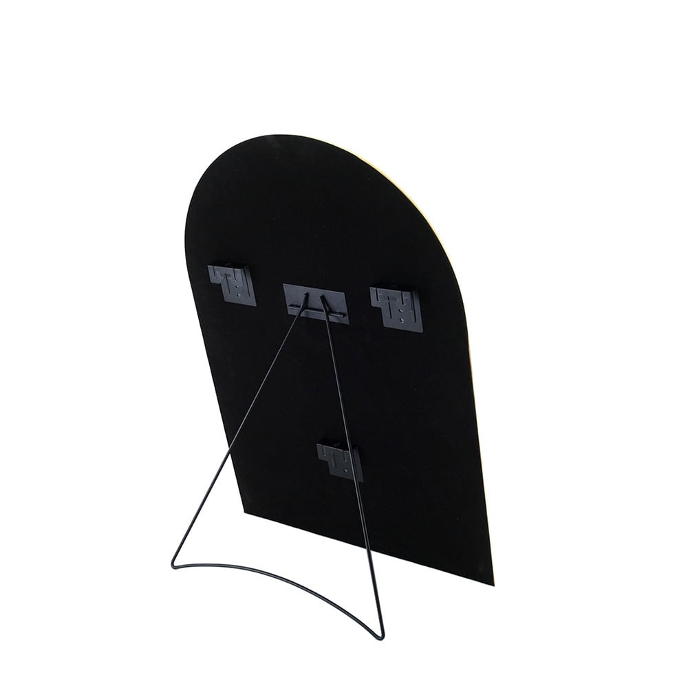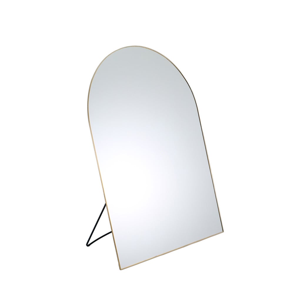 ブラスの枠にミラーをはめ込んだ壁掛け・スタンドのどちらでも使えるミラー。