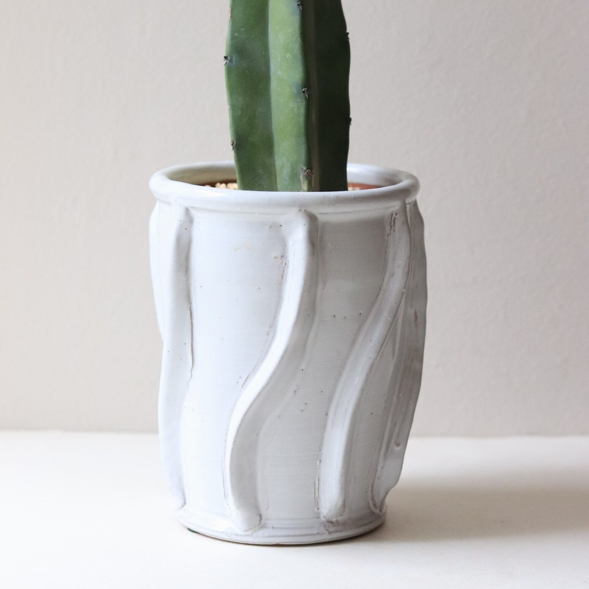 白色のデコラティブな鉢とセットです。(底穴なし)