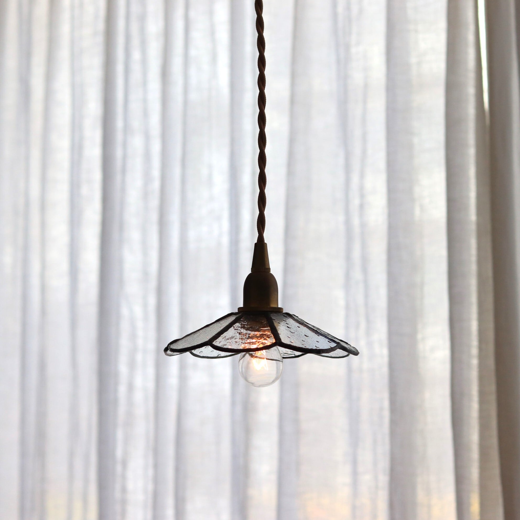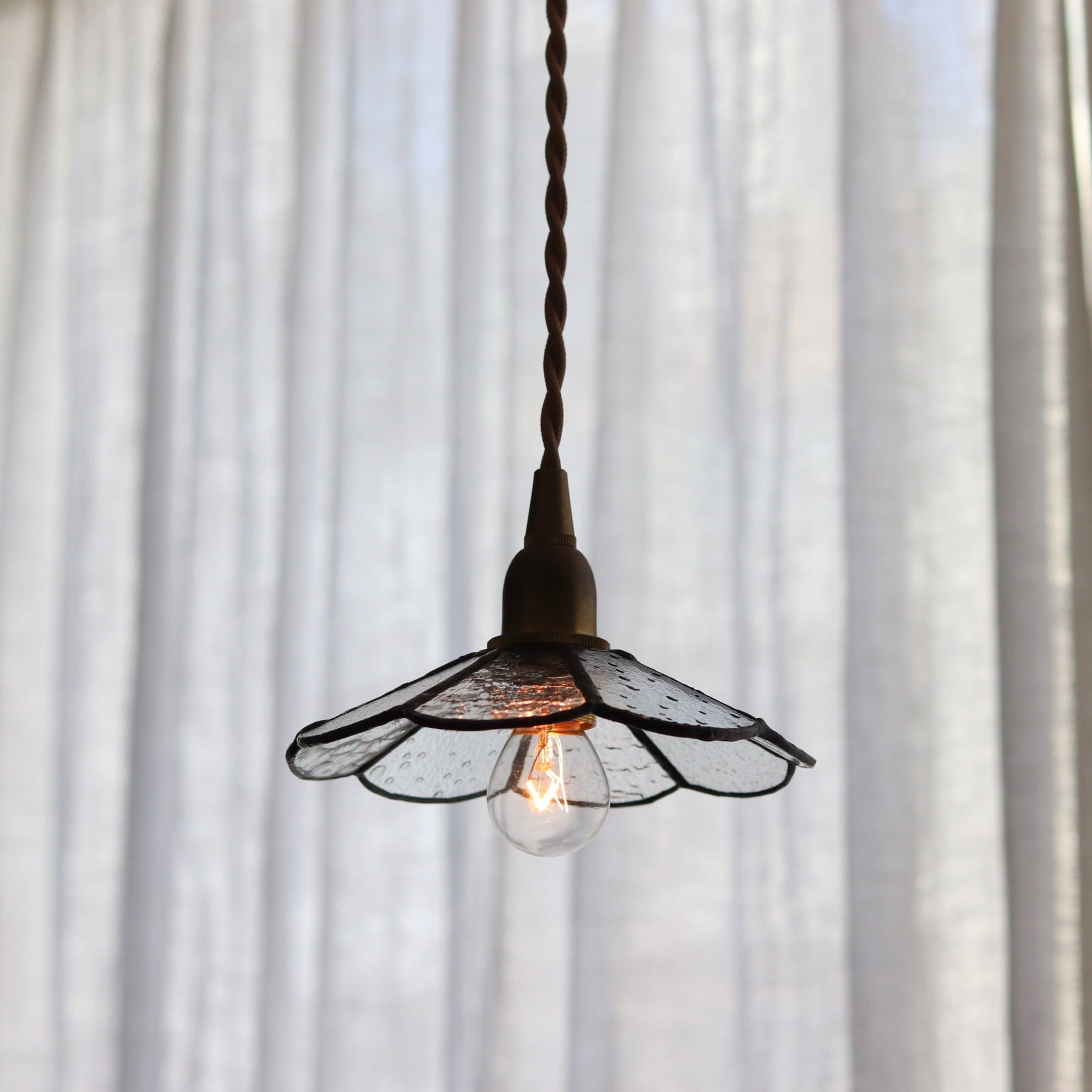 ゆるやかなカーブを描いたレトロなデザインガラスをランダムに並べました。