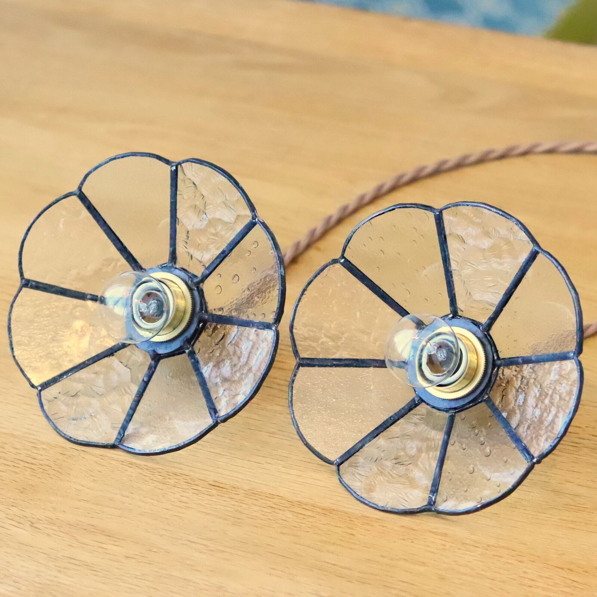 デザインガラスを8枚組み合わせた小ぶりなランプ
