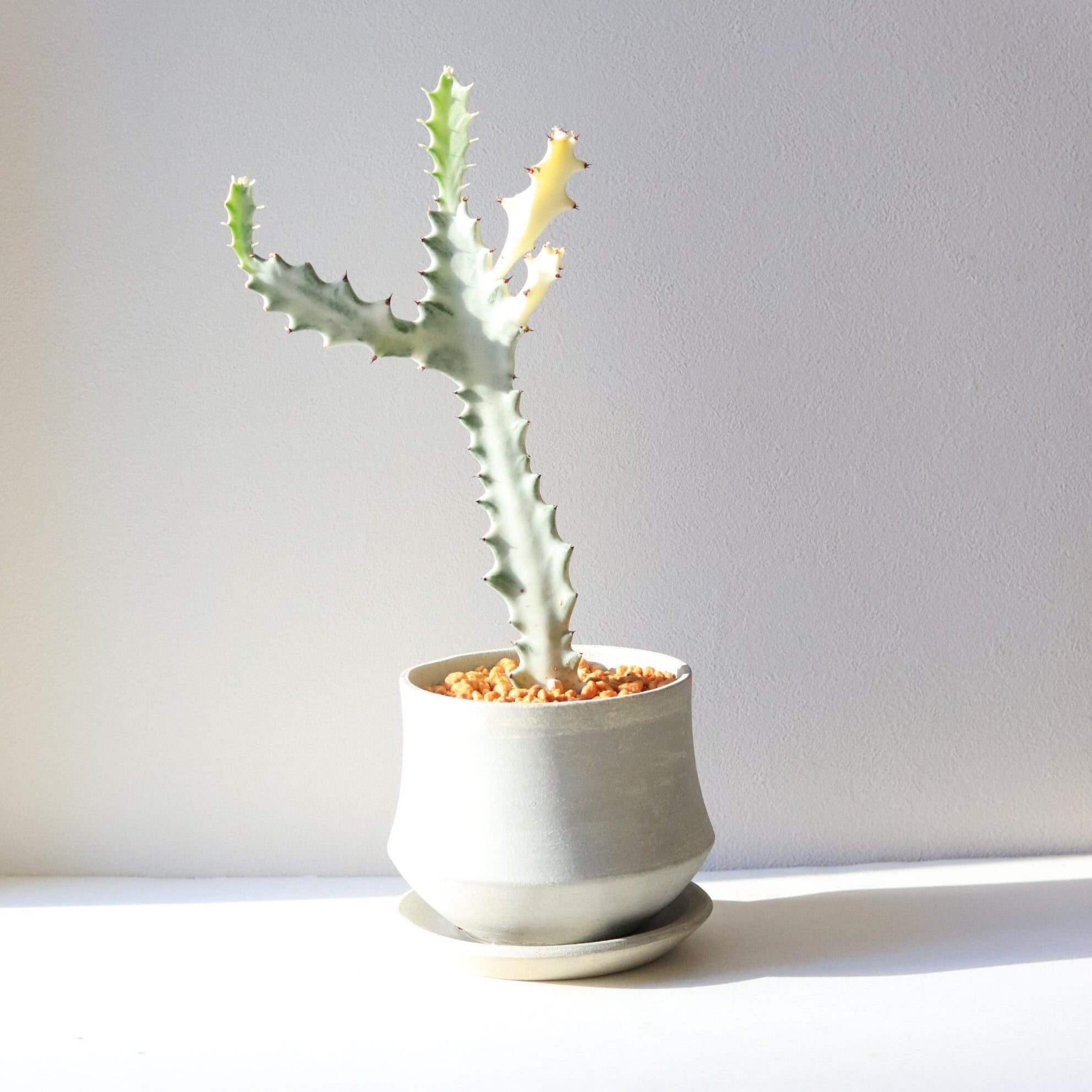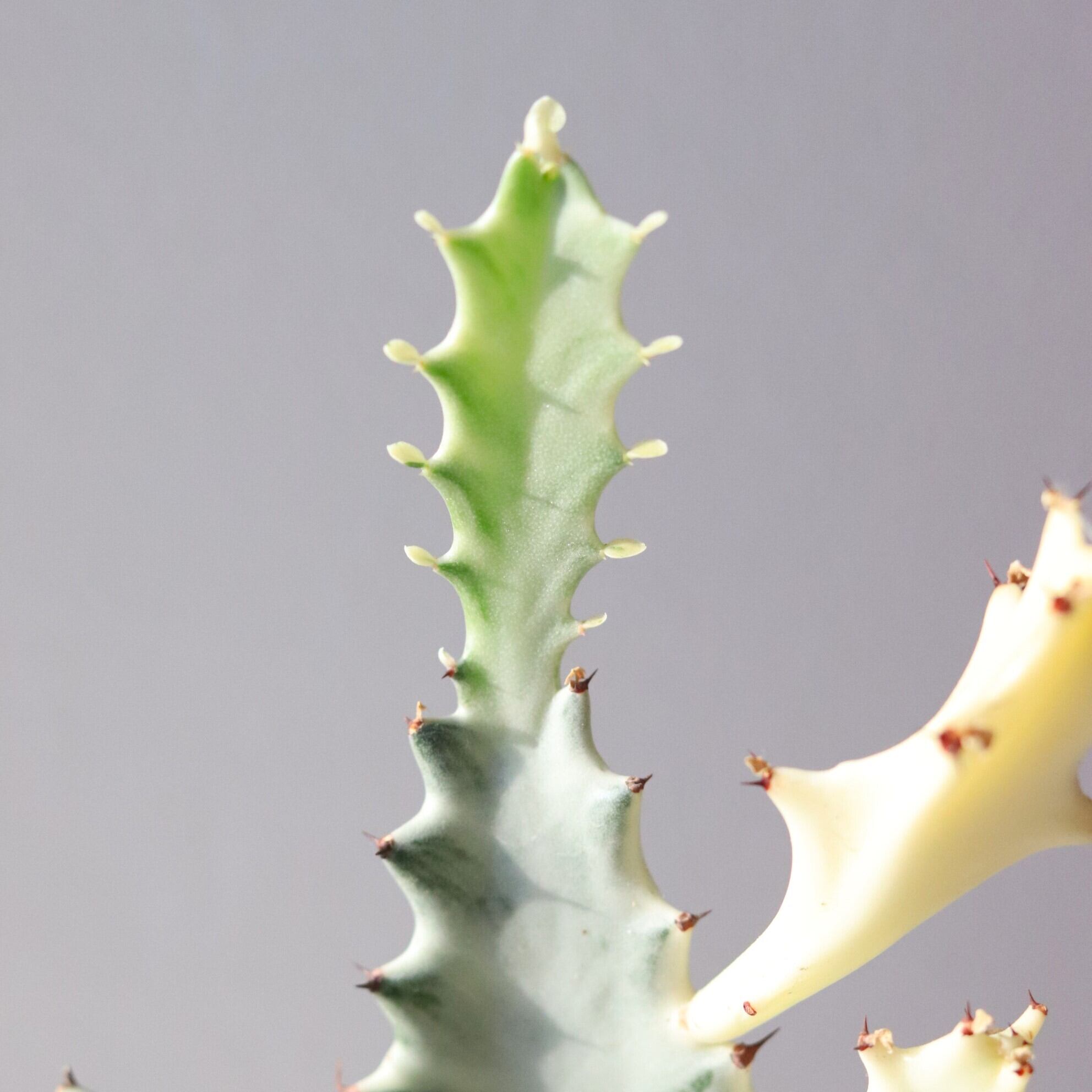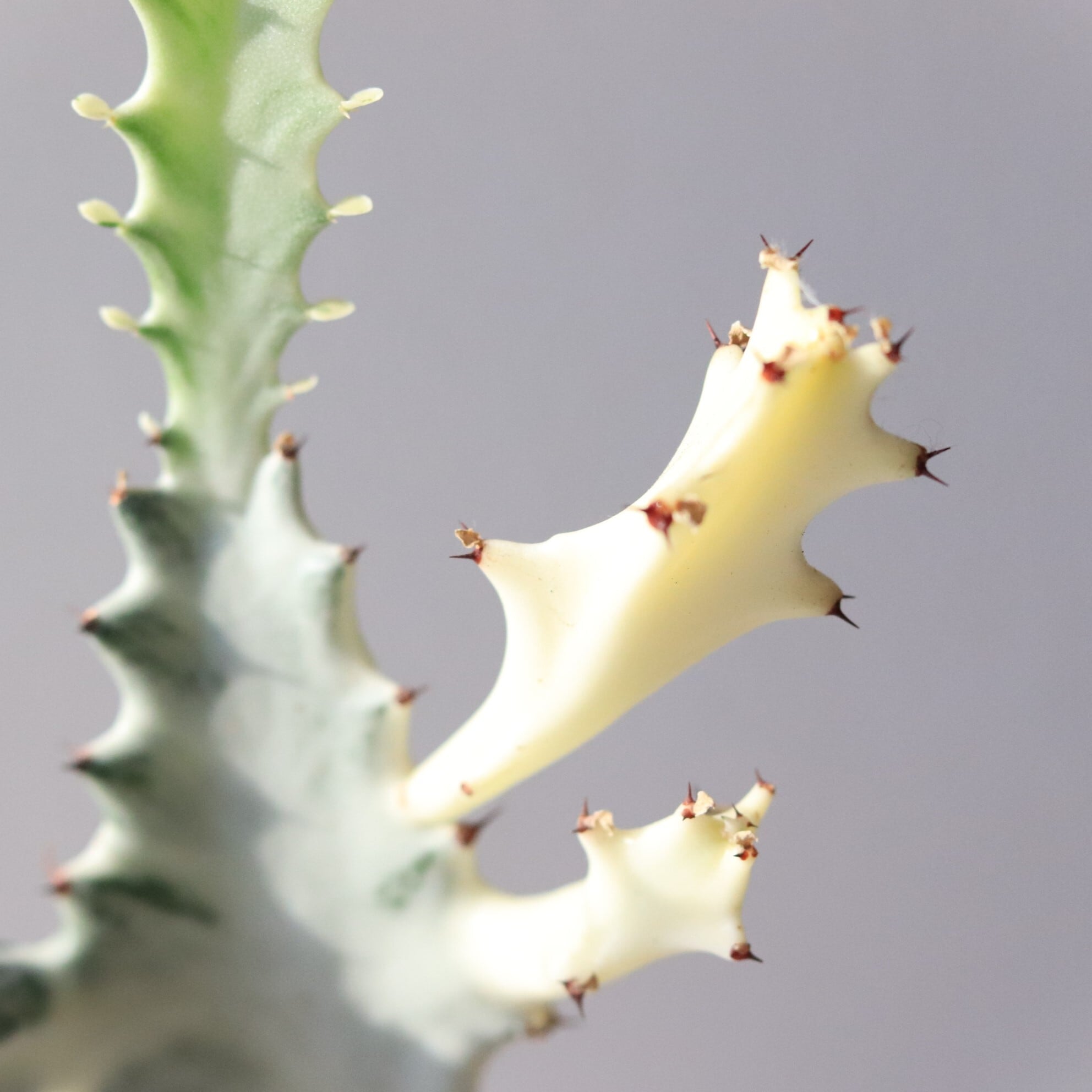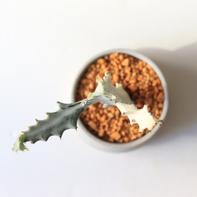 ホワイトゴーストは、ユーフォルビア・ラクテアの園芸品種の斑入り種。