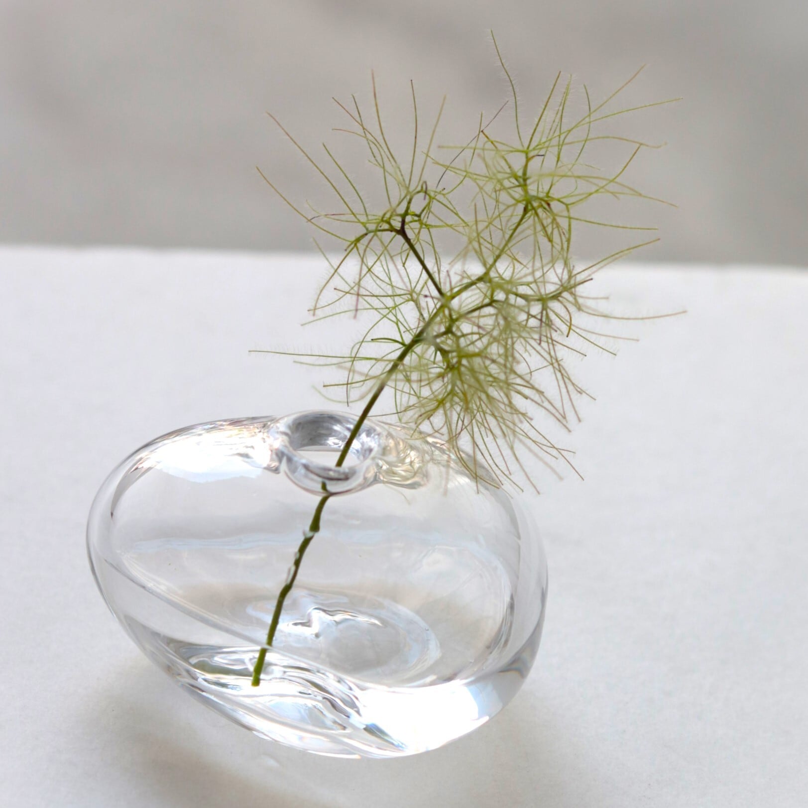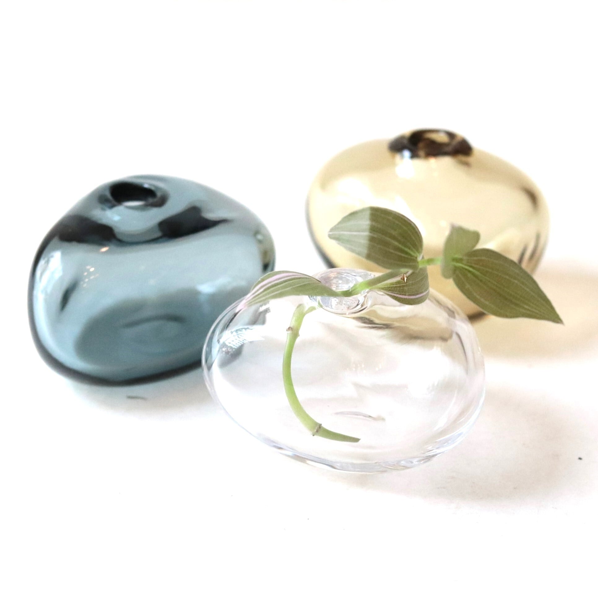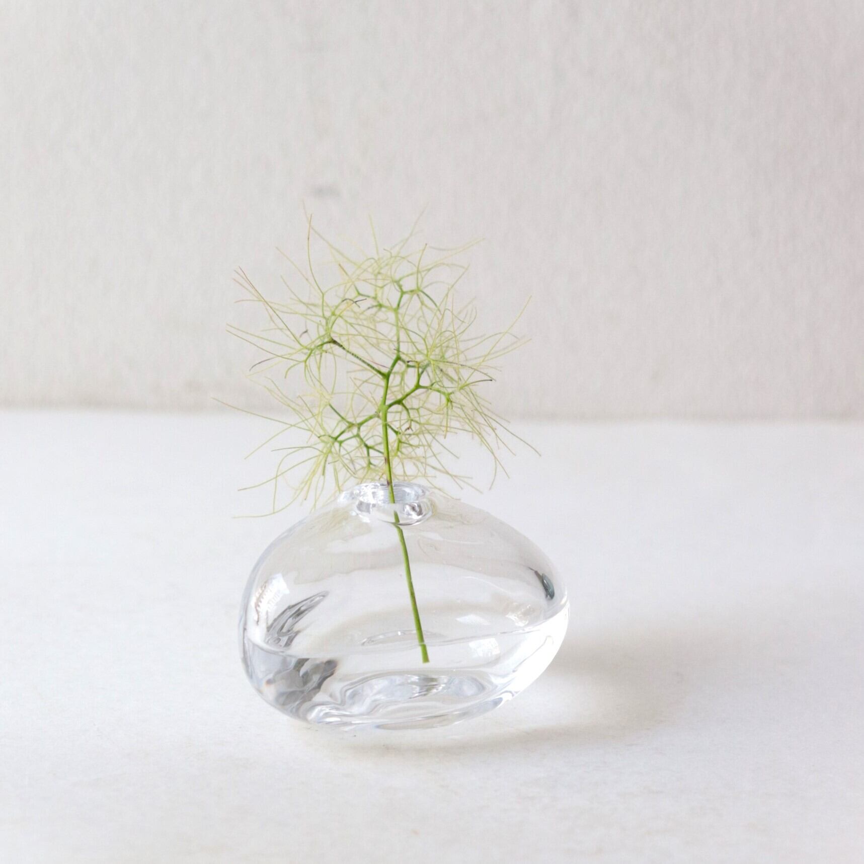 小さなガラスのフラワーベースは、まるでお水を置いているかのよう。