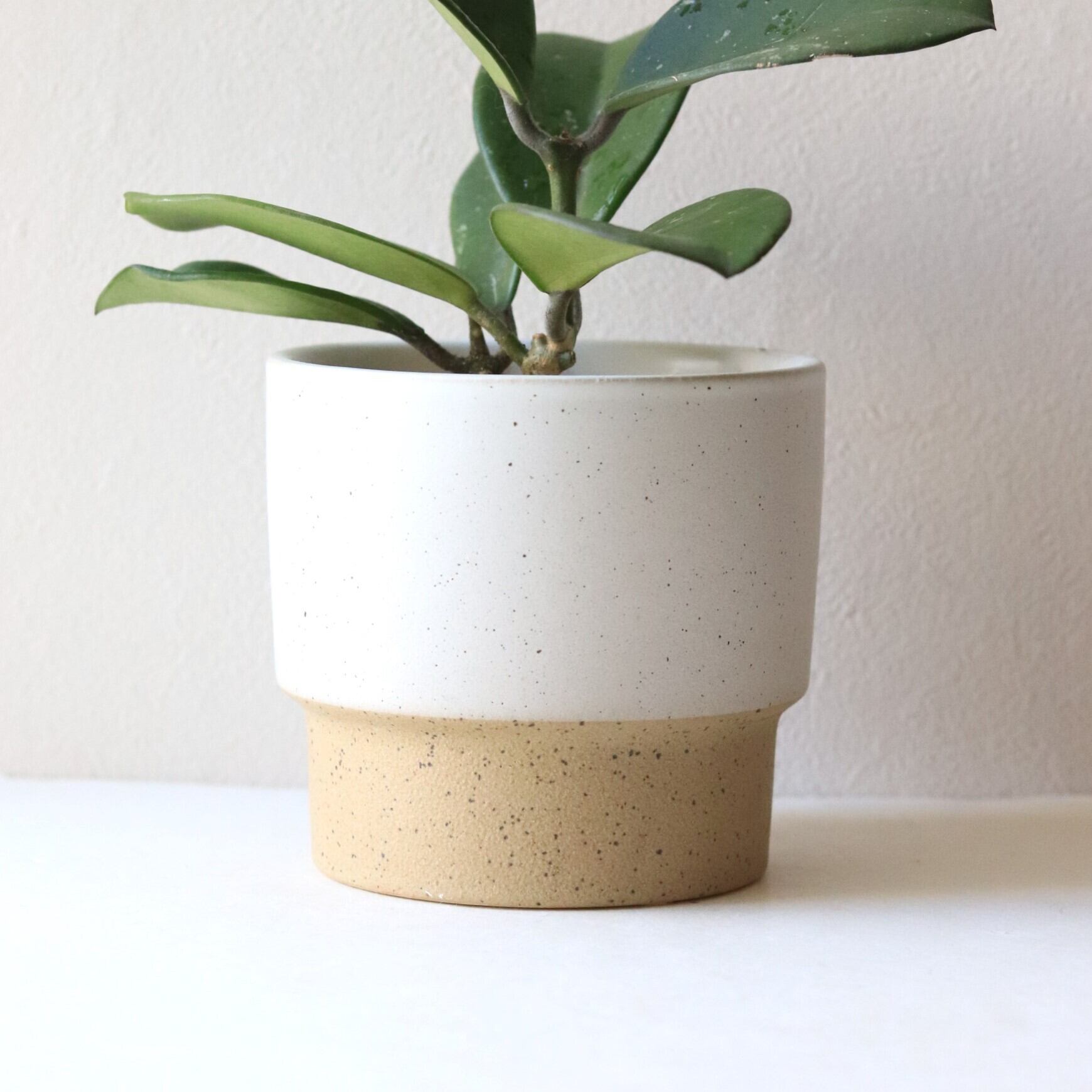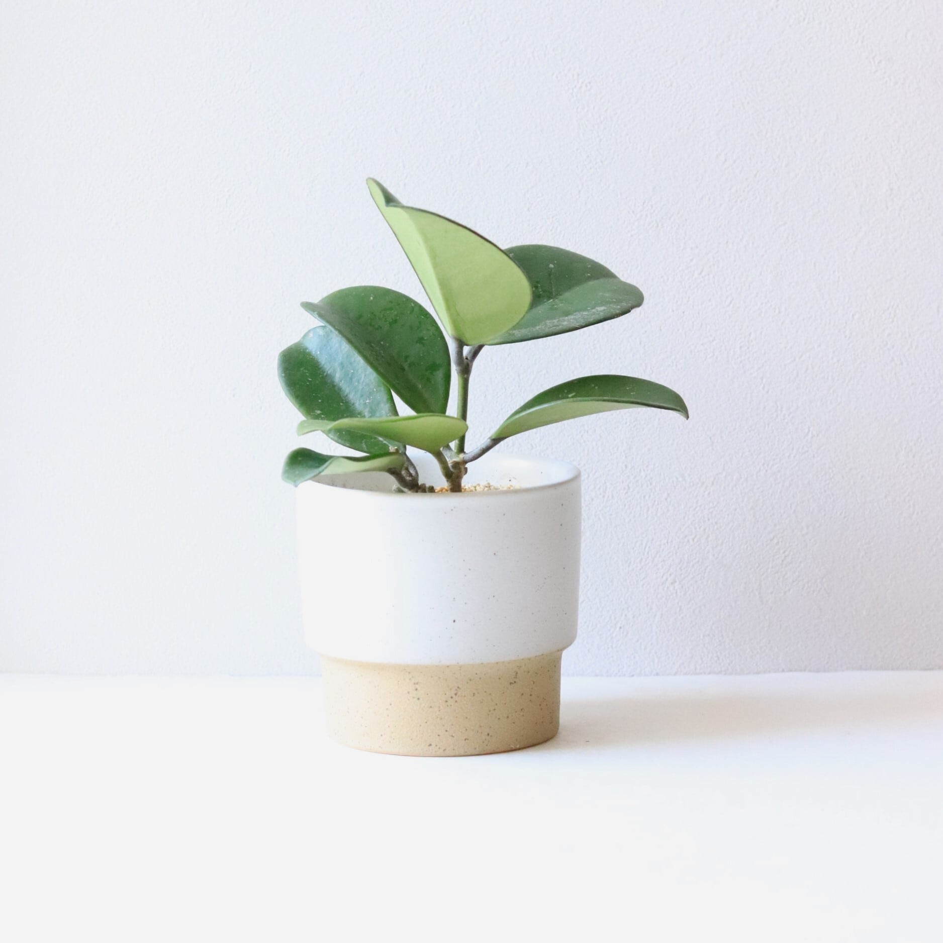 ホワイト&ベージュのツートーンの鉢とセットです。(底穴なし)