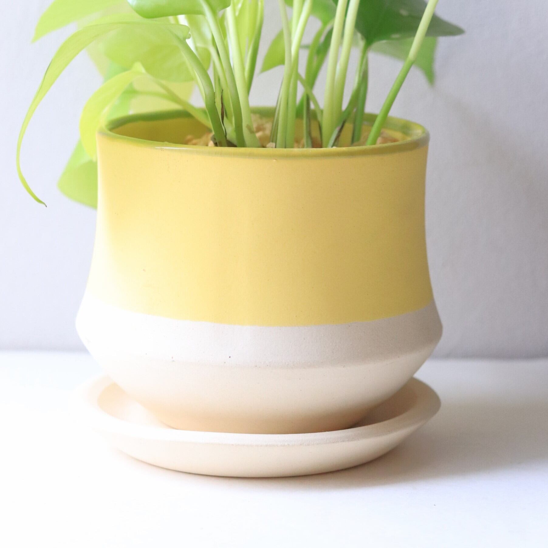 イエロー&ホワイトの信楽焼の鉢と下皿のセットです。