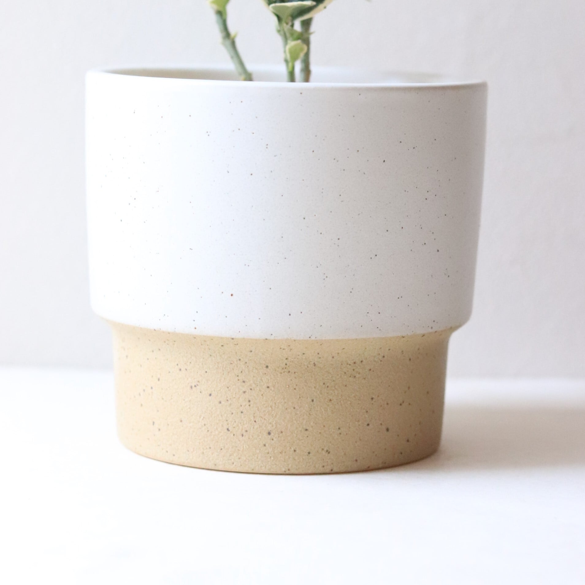 ホワイト&ベージュの鉢とセットです。(底穴無し)
