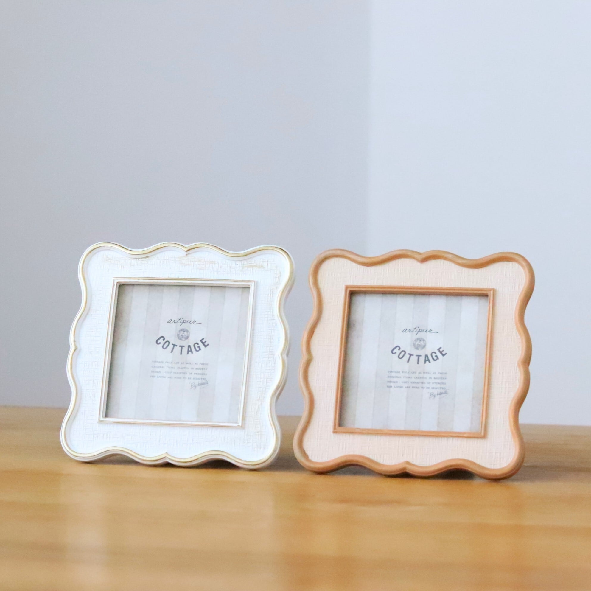 波打つようなウェーブフォルムが印象的な、アンティーク調フォトフレーム。