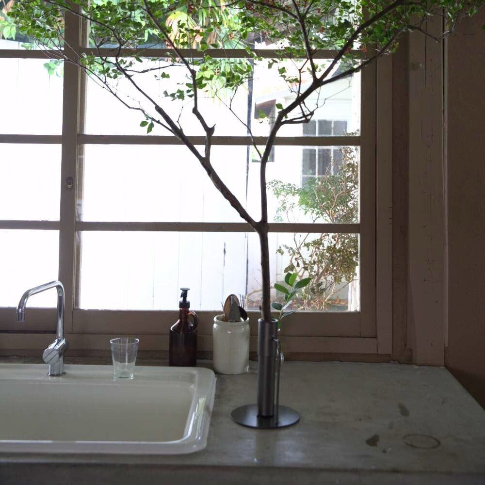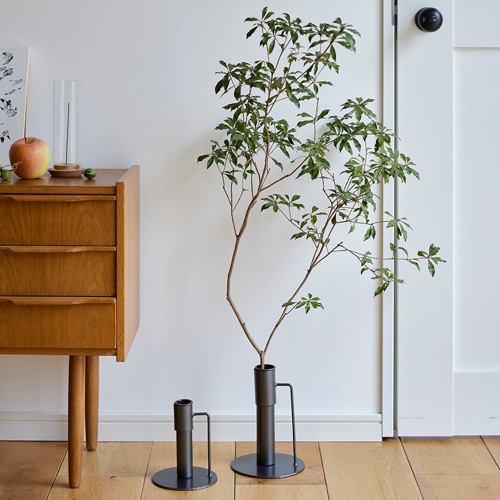 枝ものを活けて飾れるアイアンスタンド。