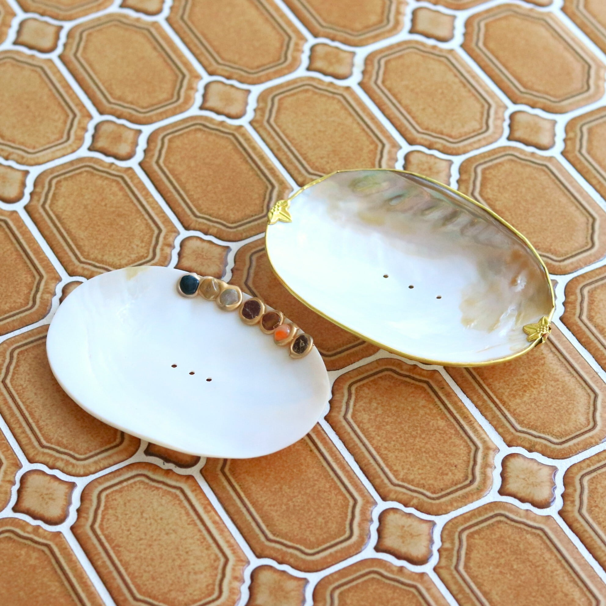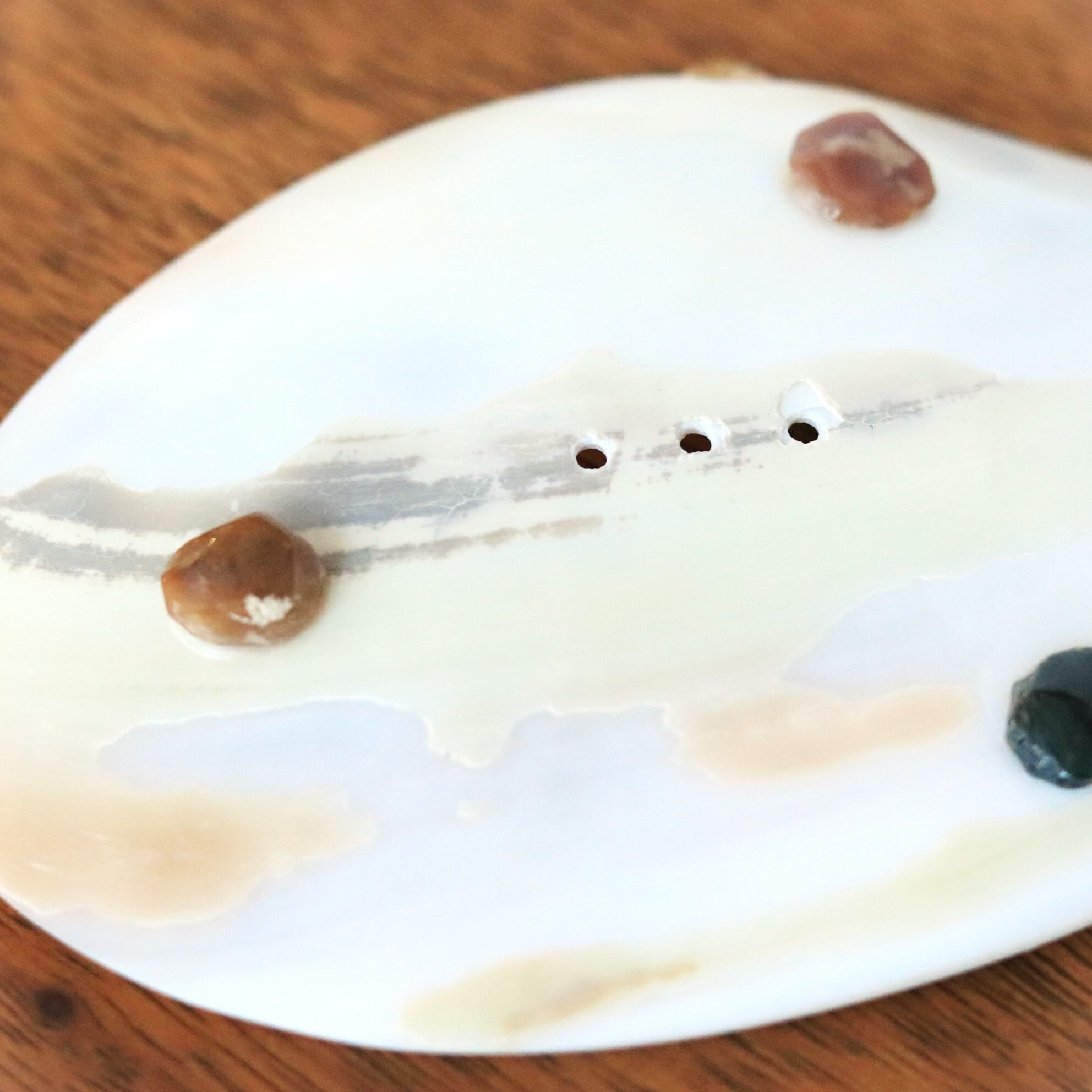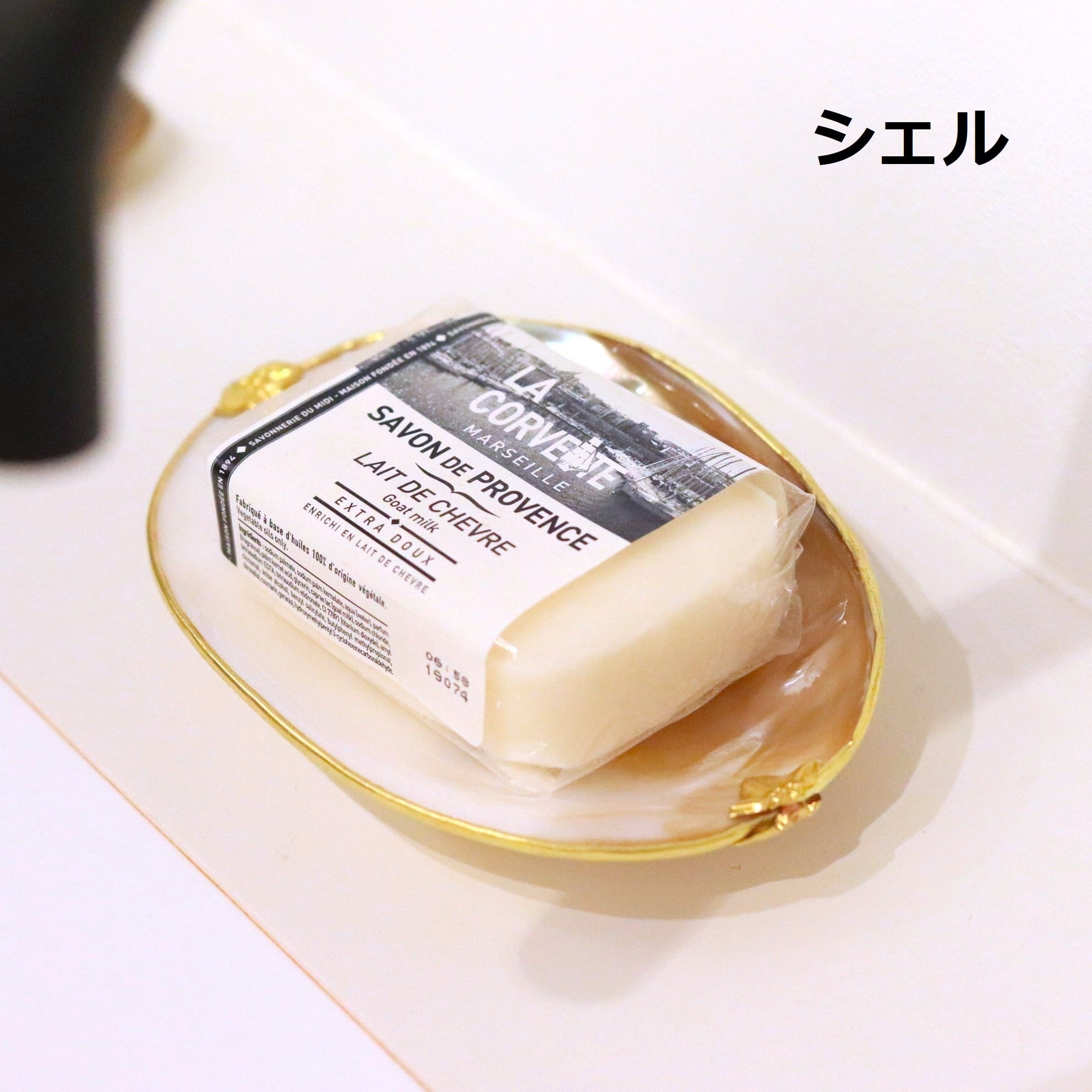 廃棄される貝を磨き上げて生まれた繊細なシェルのソープディッシュ。