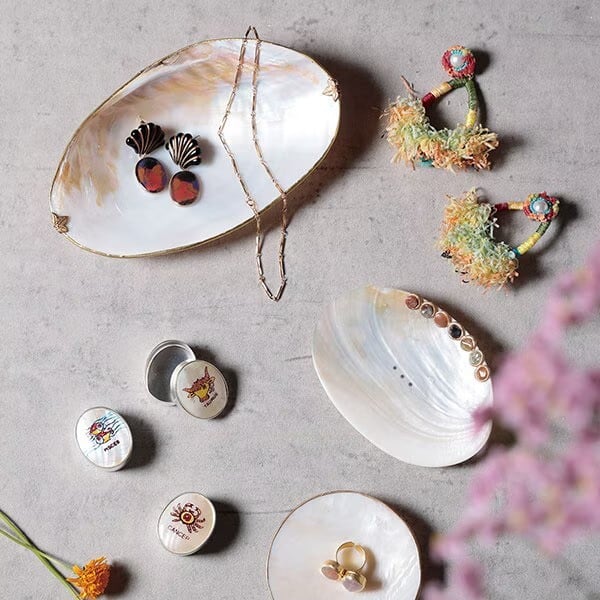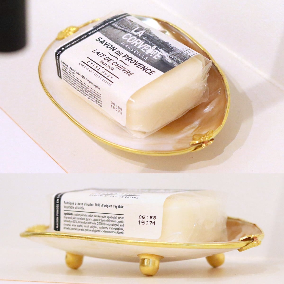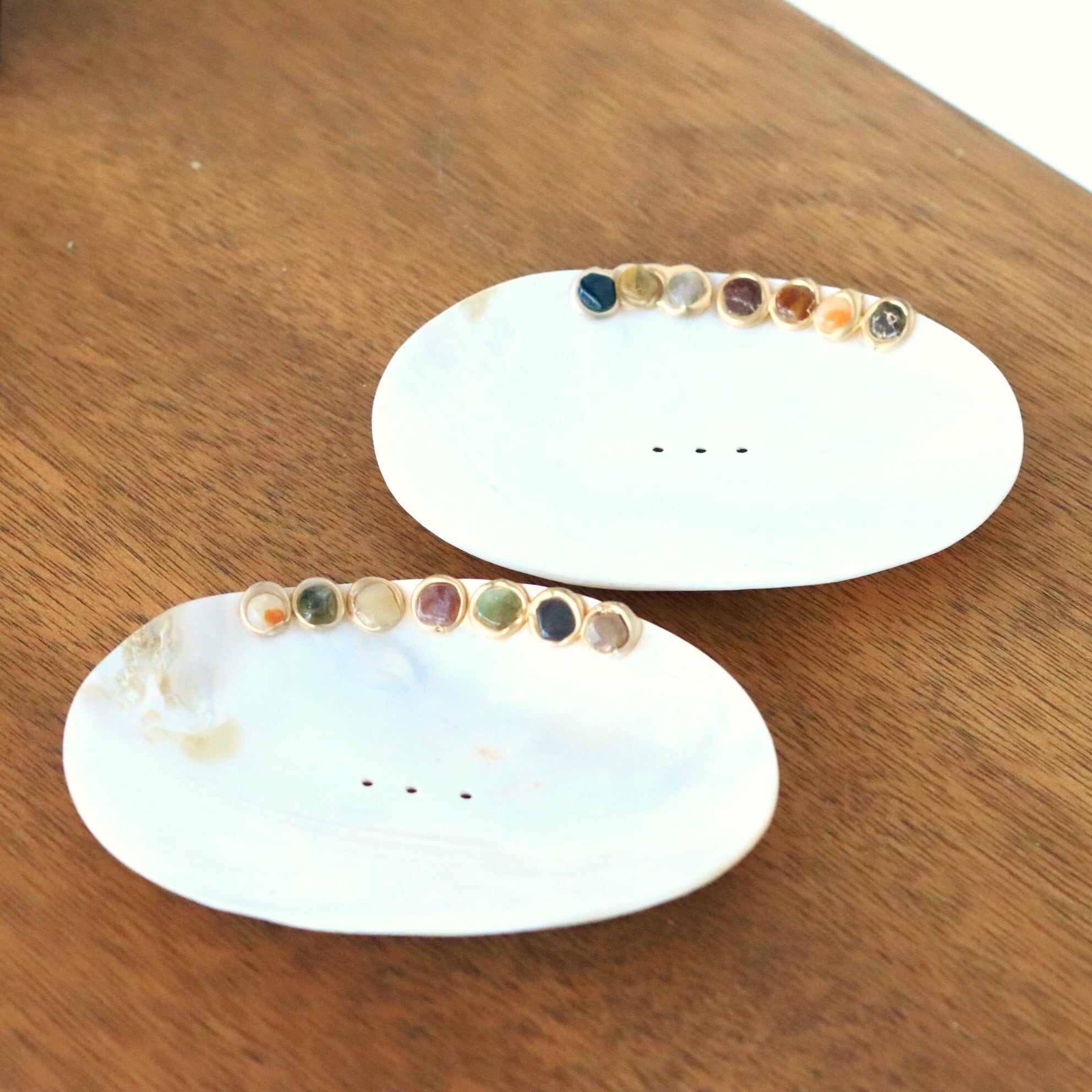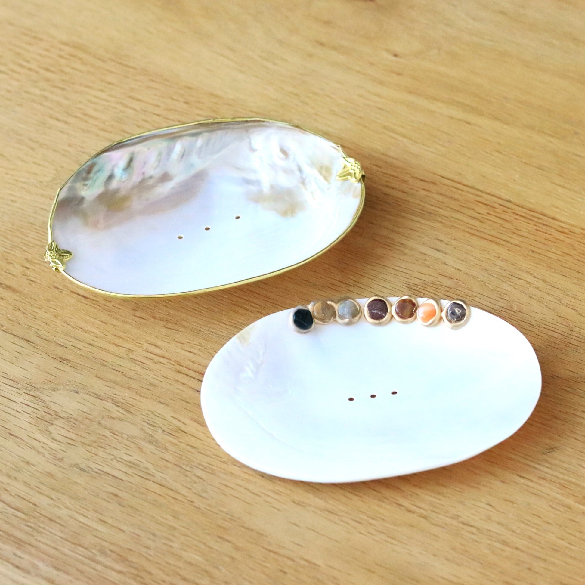 廃棄される貝を磨き上げて生まれた繊細なシェルのソープディッシュ。