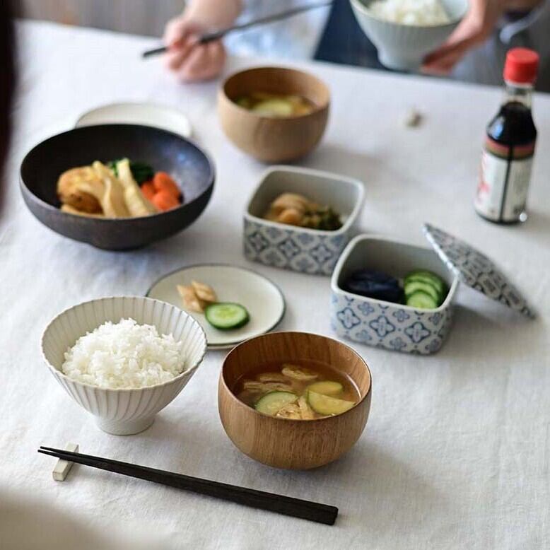 飯碗との組み合わせはもちろん、プレートと合わせてポタージュスープとパンのセットも