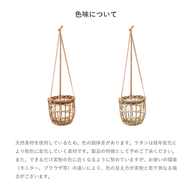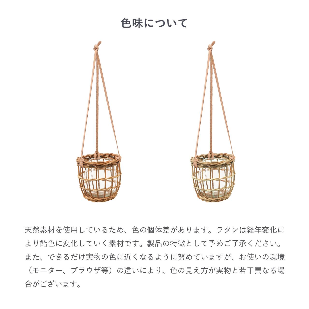 ※天然素材を使用したハンドメイド品のため、形の歪みやサイズ、色味の濃淡などひとつひとつ個体差があります。表皮をそのまま残して編んでいるため、表皮の剥がれが生じる場合があります。また、黒い斑点やささくれのある素材が含まれる場合があります。手作り商品のため、ガラスに若干の傷がある場合がございますが、使用上問題ないため予めご了承くださいませ。