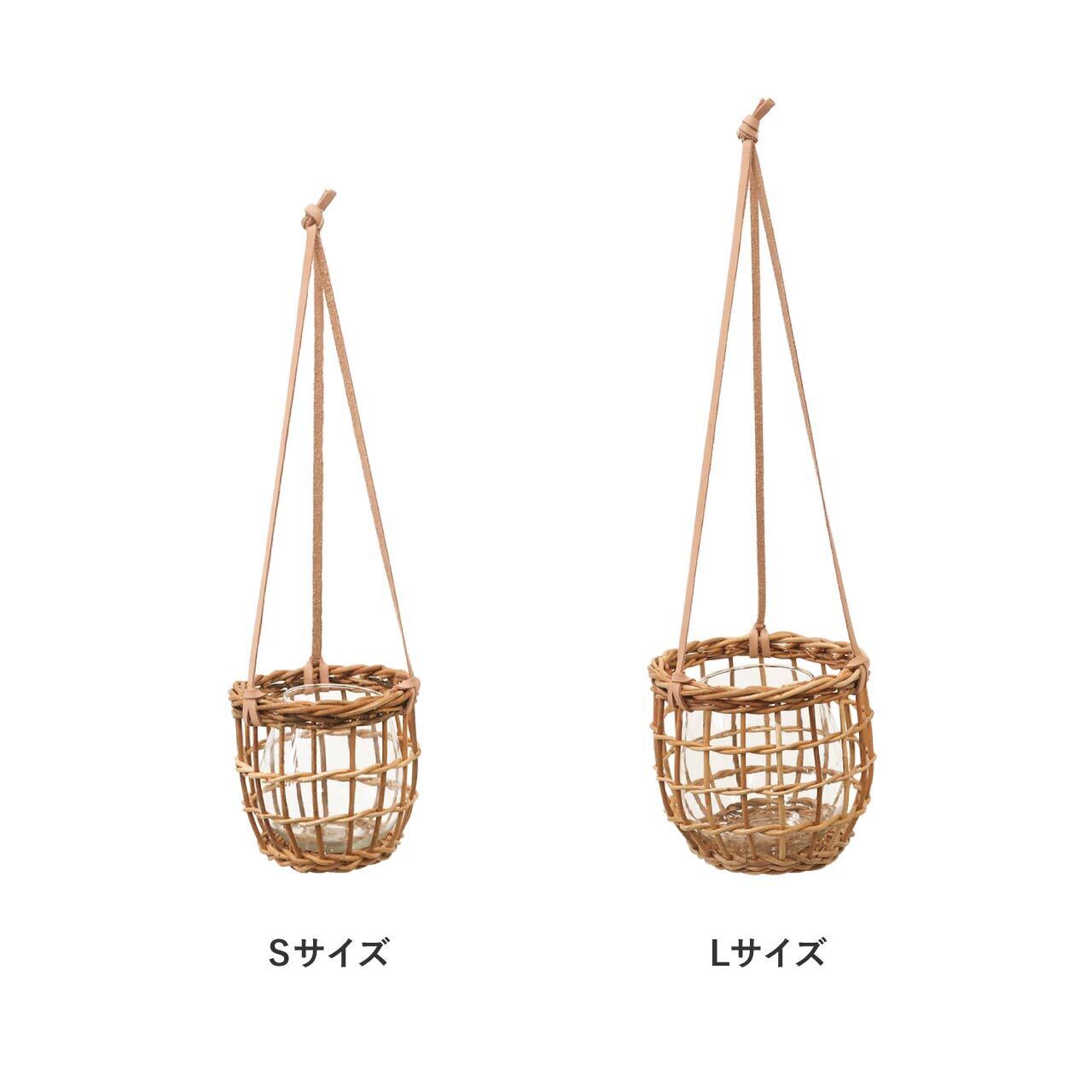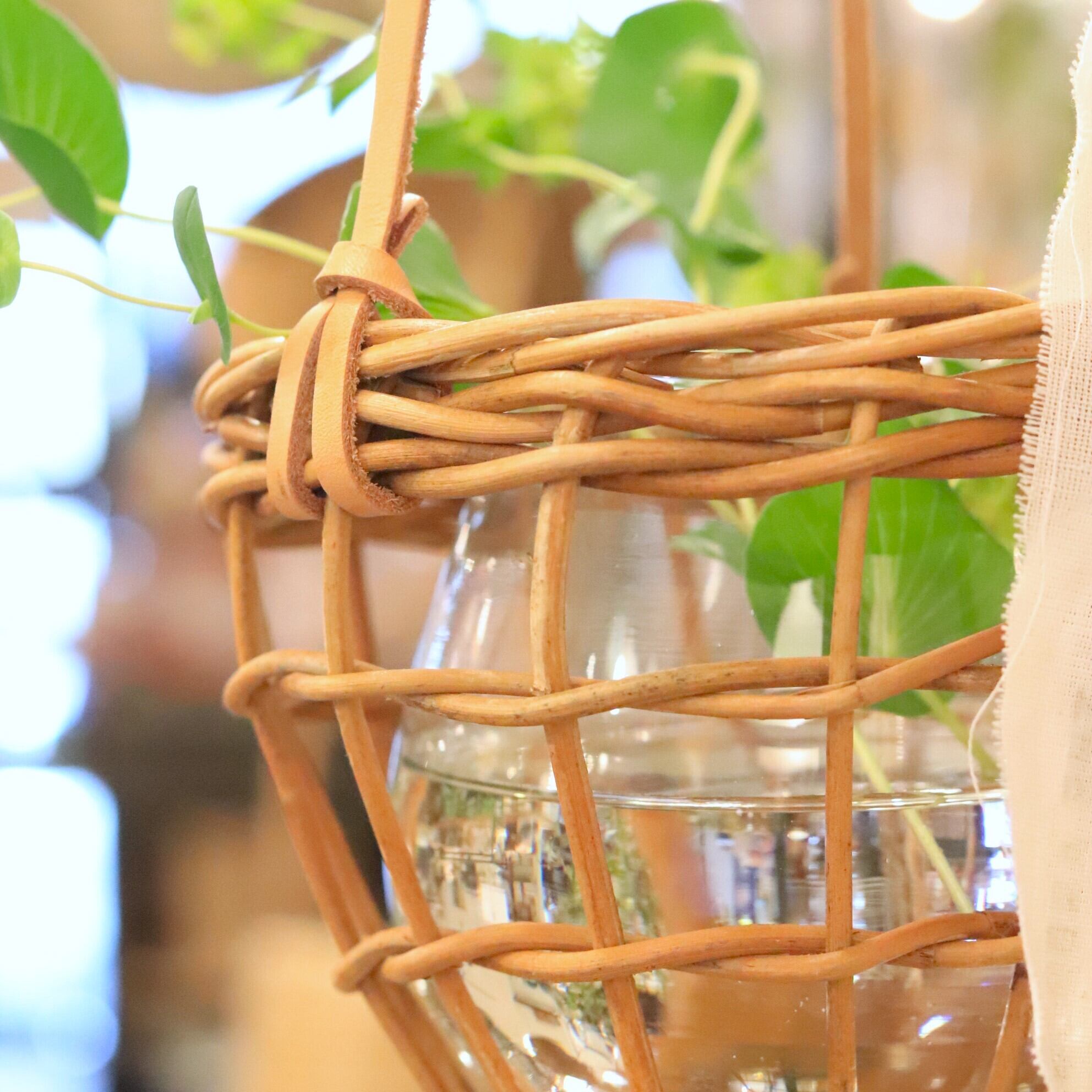 皮付きラタンのバスケットにガラスベースを組み合わせた、