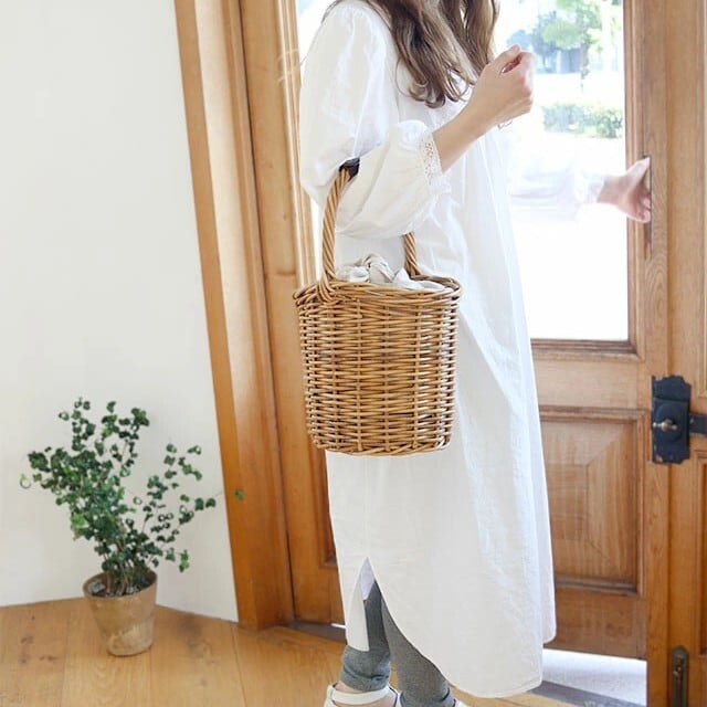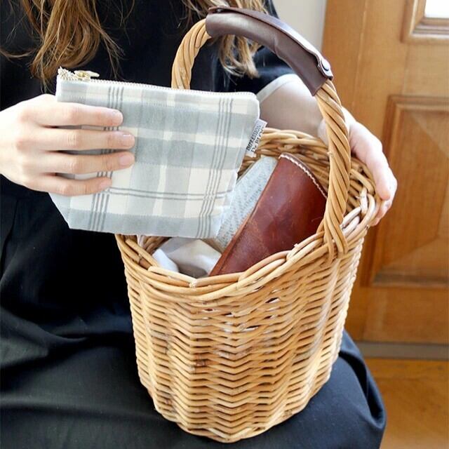 風合い豊かな皮つきラタンかごバッグ。