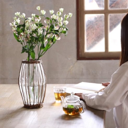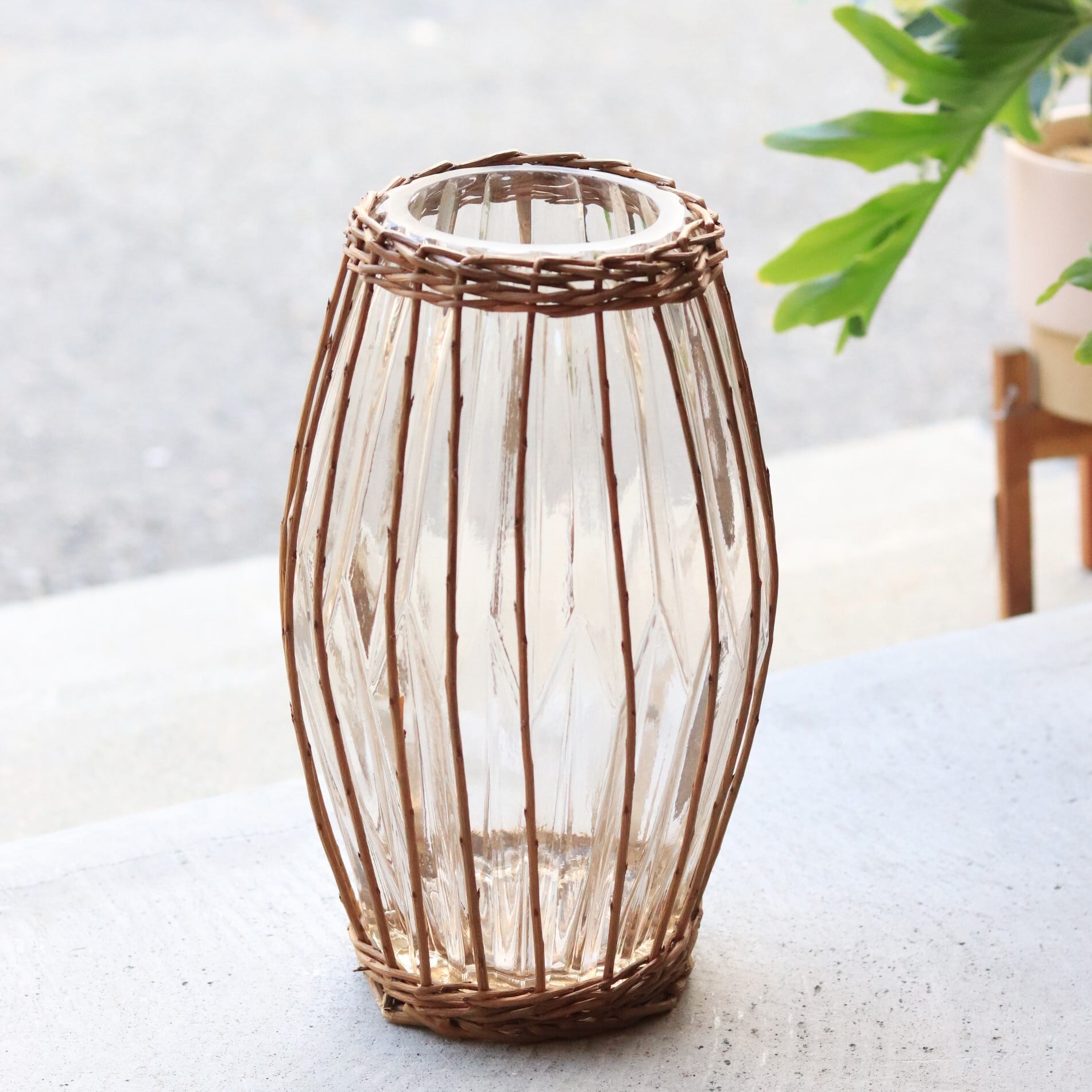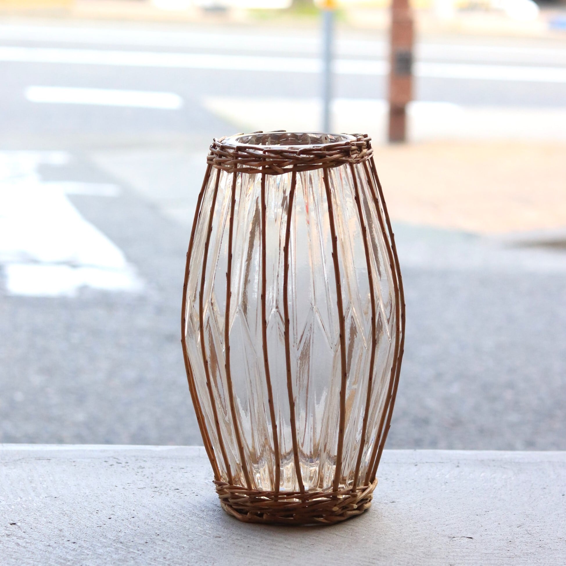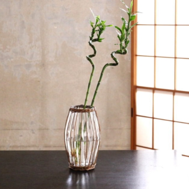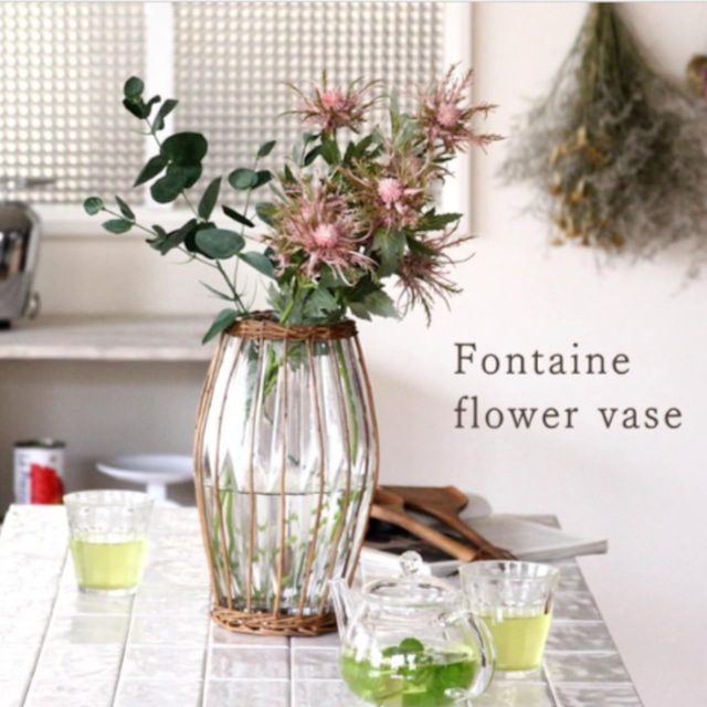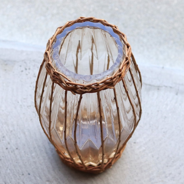 【ガラス】FONTAINEカゴ編みガラスフラワーベース