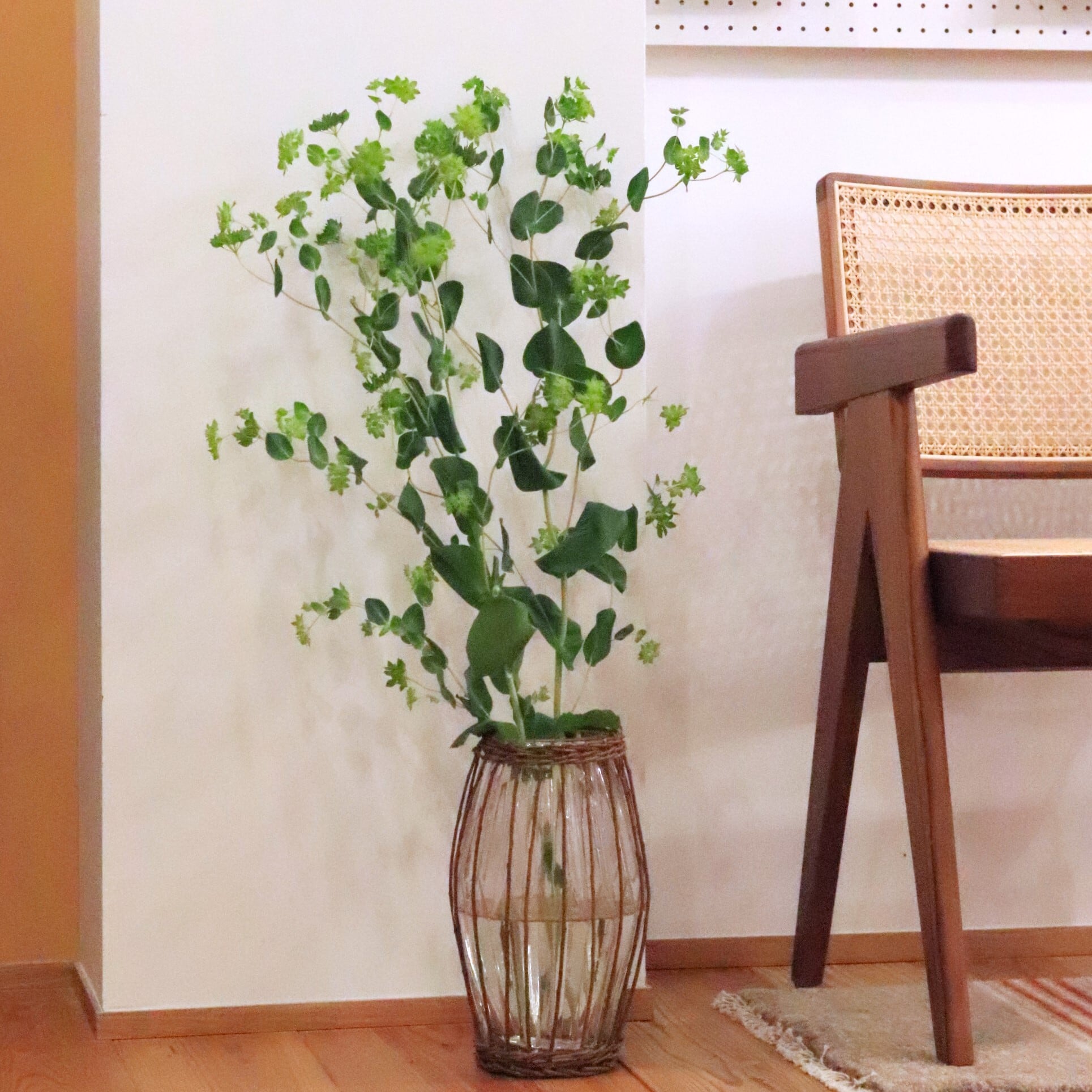 背の高い葉もの、枝ものを活けるのにおすすめの一品です。