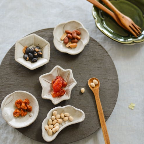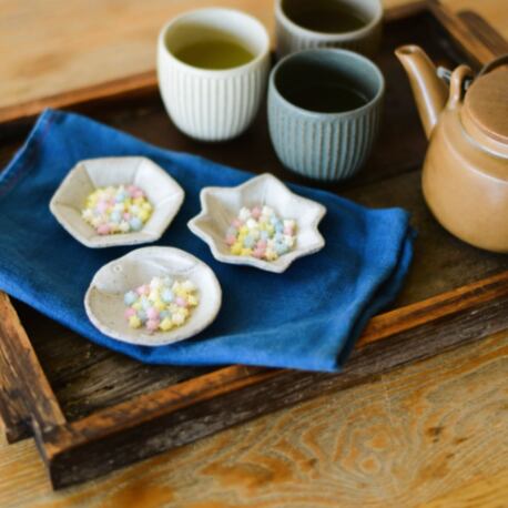 干菓子(ひがし)をイメージして作られた表情豊かな手作りの豆皿。