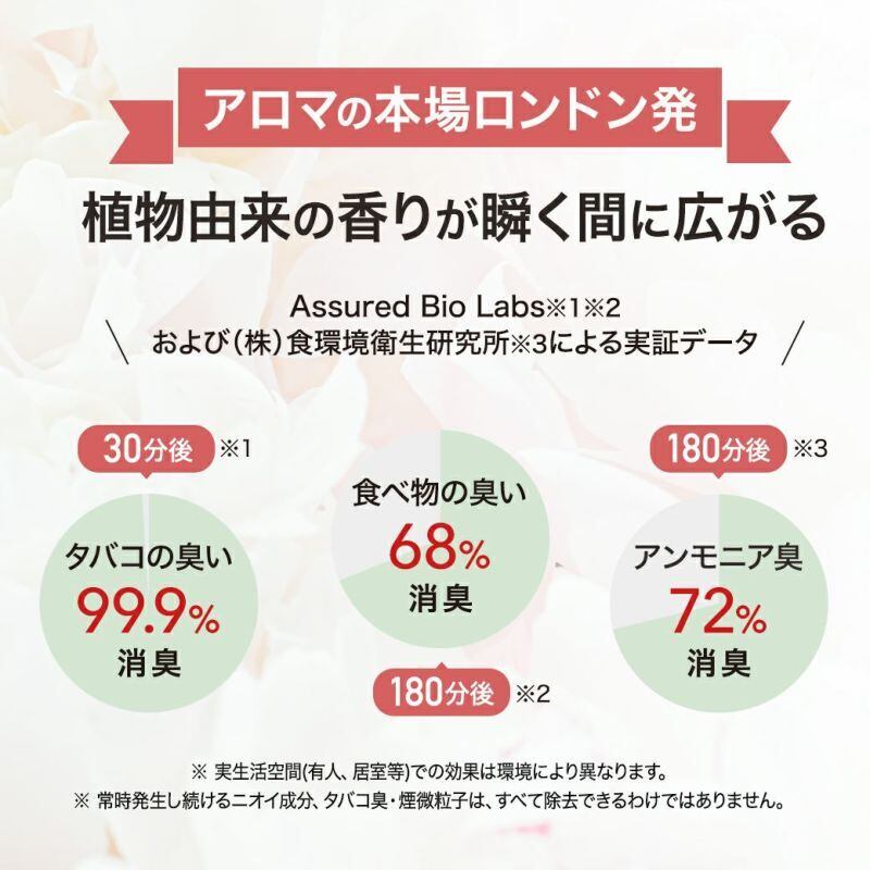 心地よい香りと共に空気を消臭し、一瞬にしてワンランク上の空間を作り上げます。