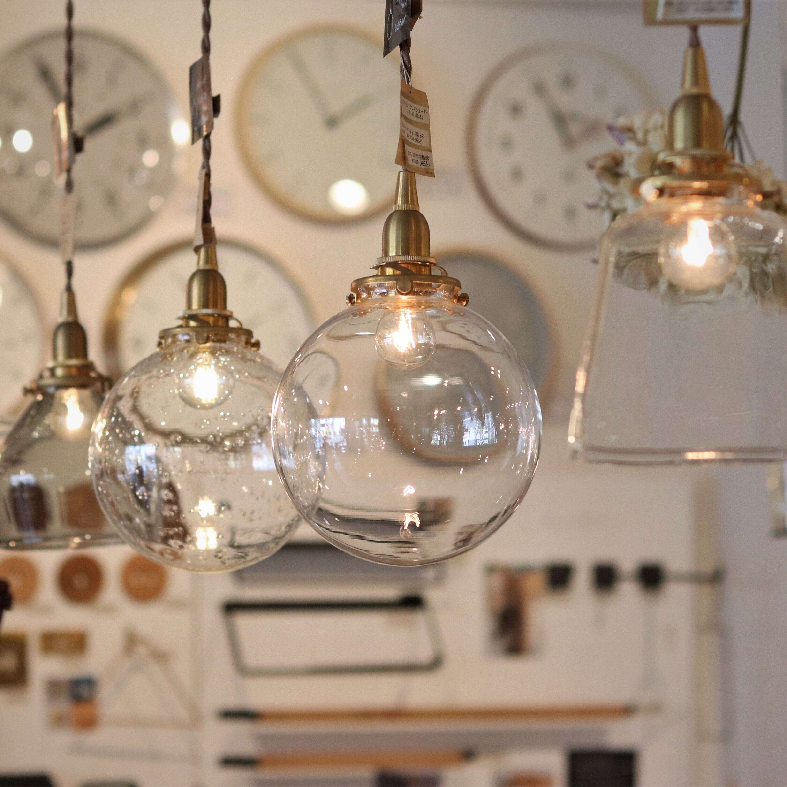 まんまるな形のクリアガラスシェード