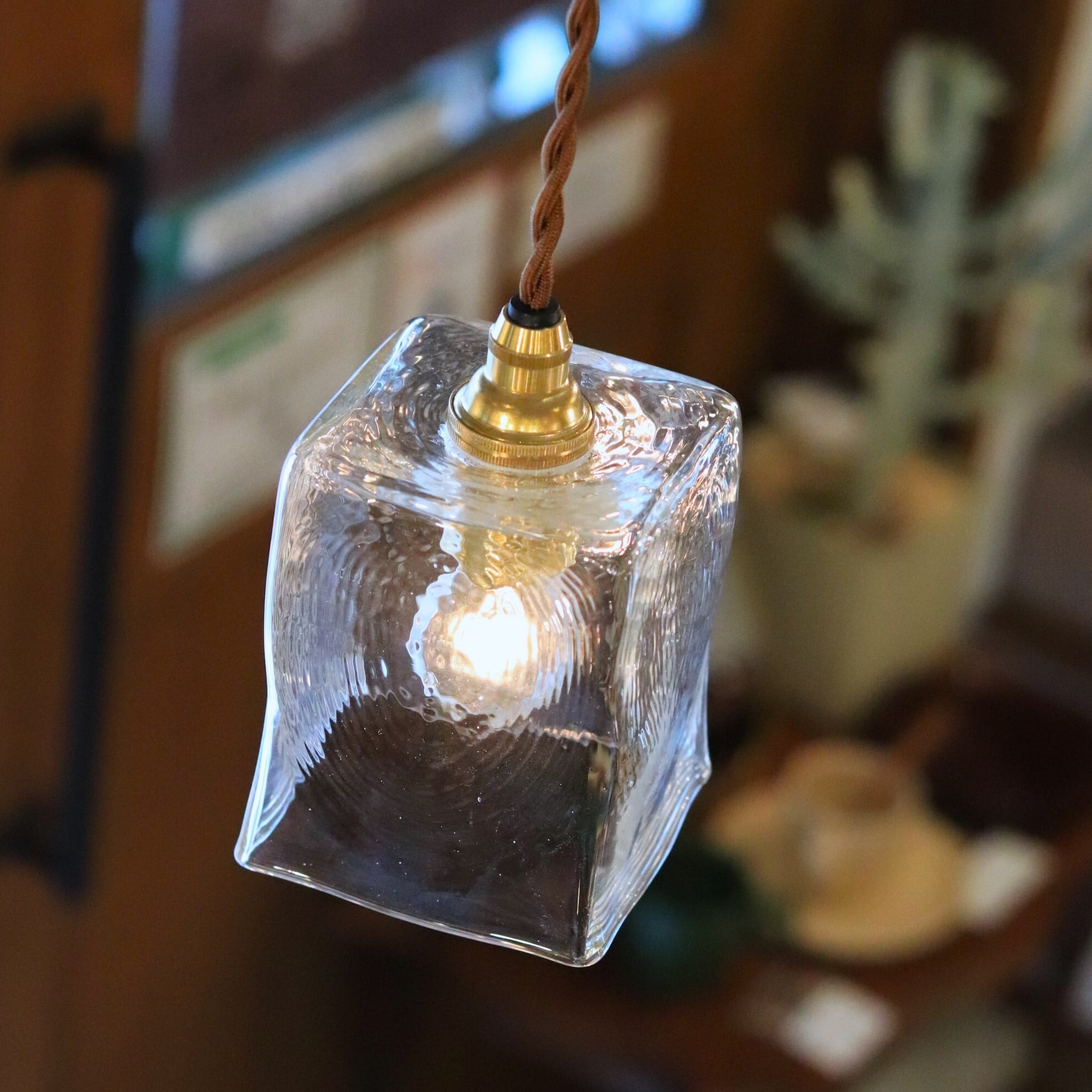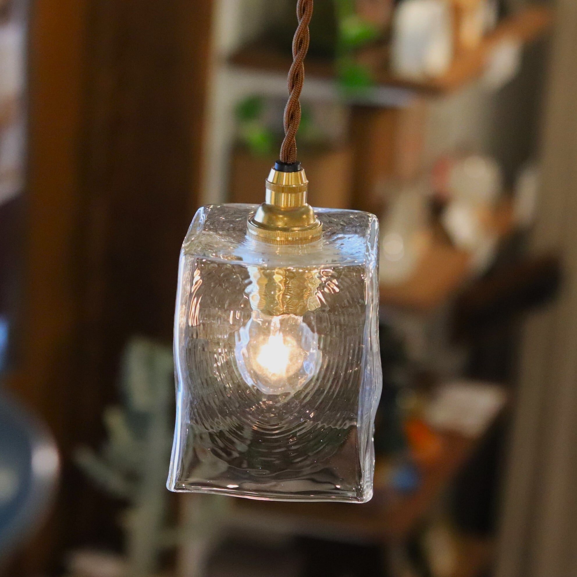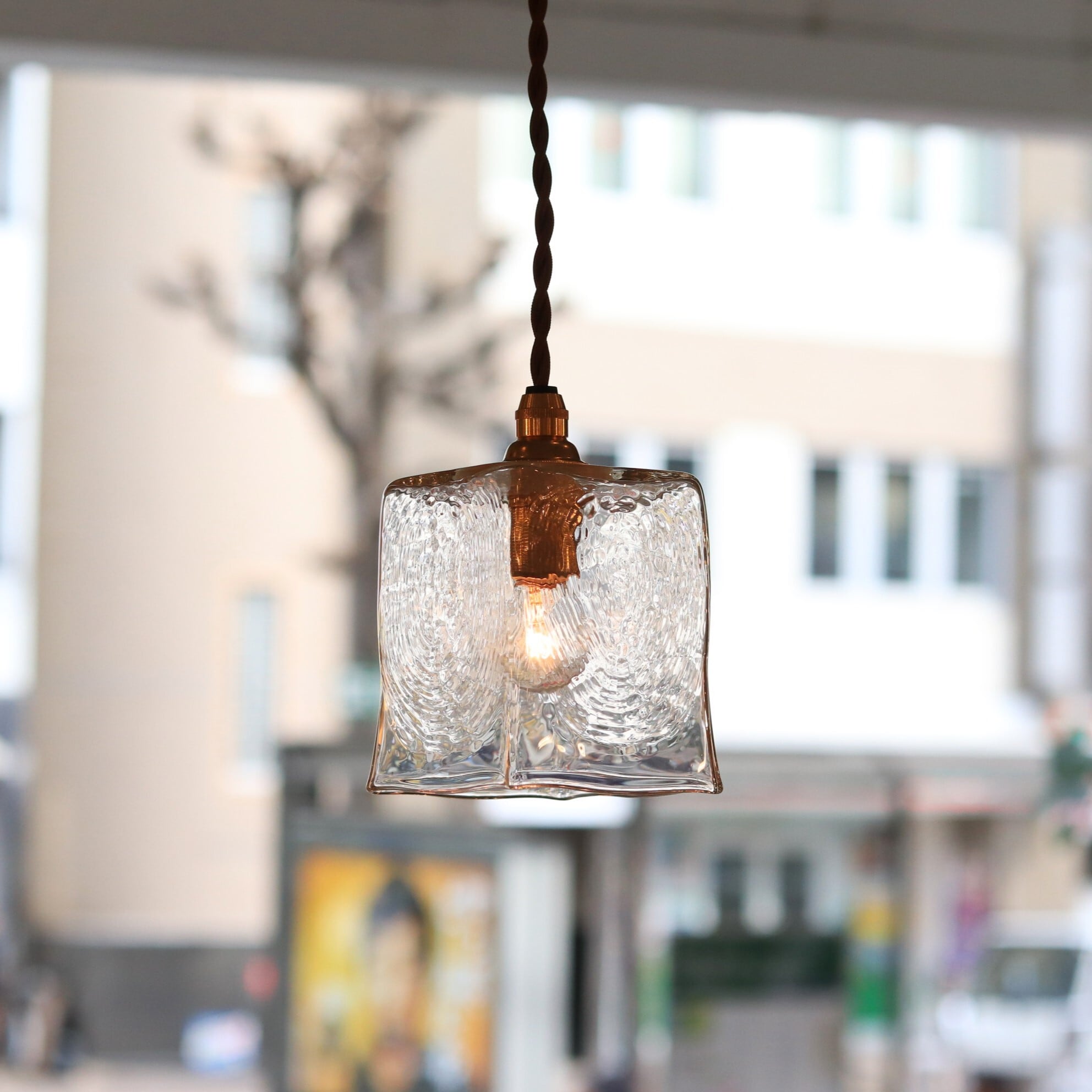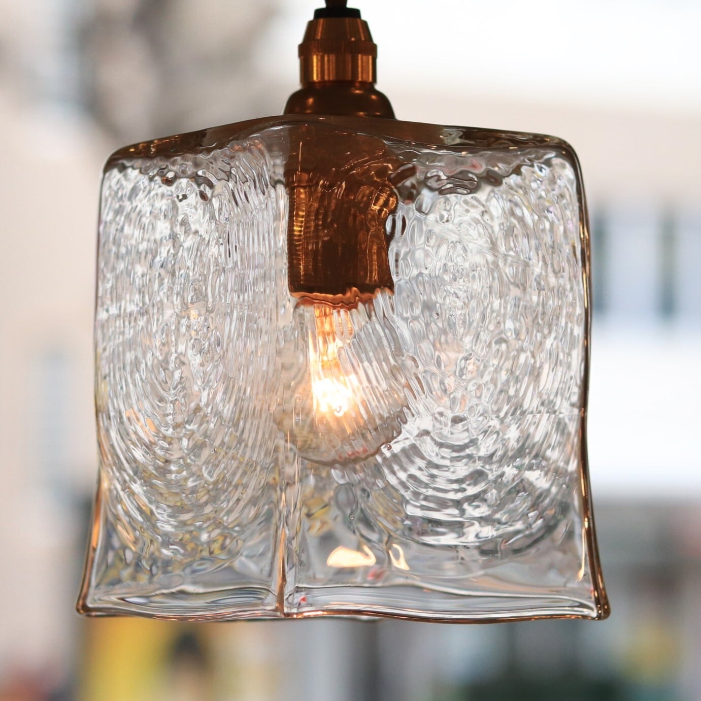 キューブ型のガラスシェードの表面には波打つような模様が広がります。