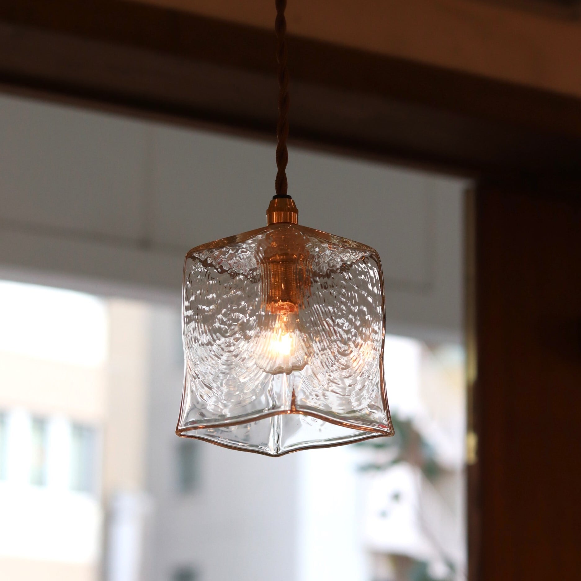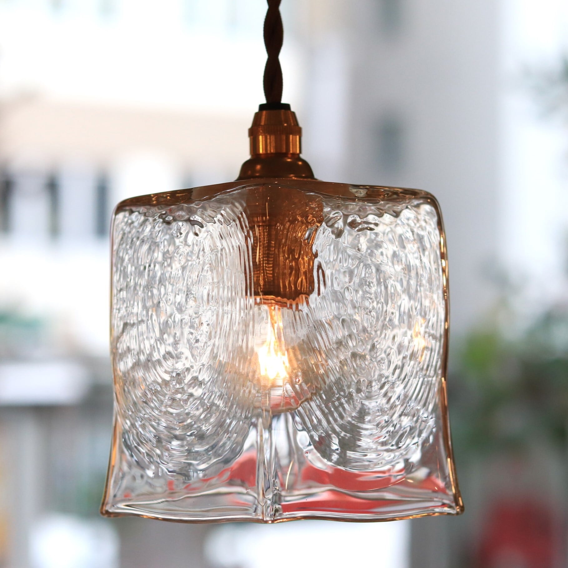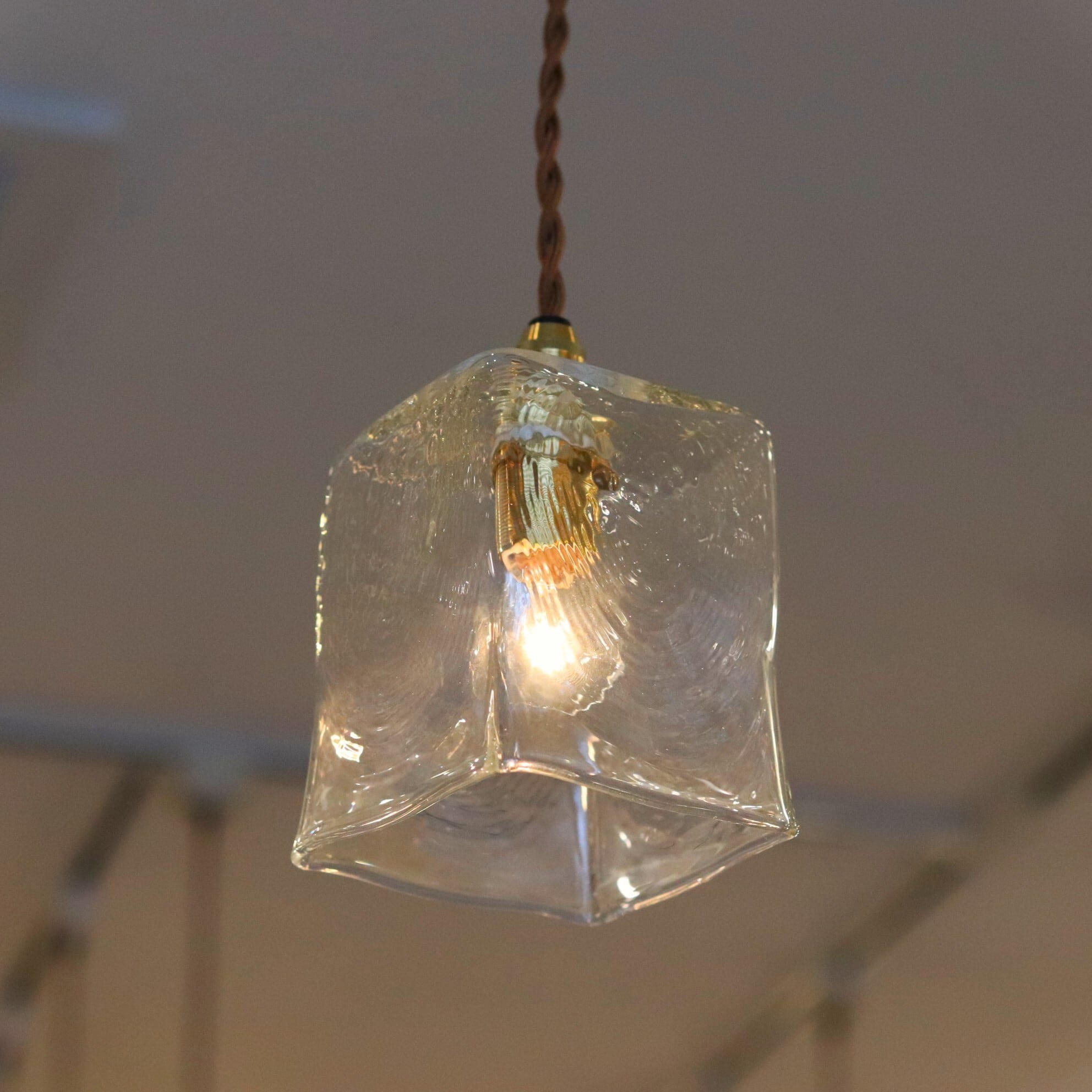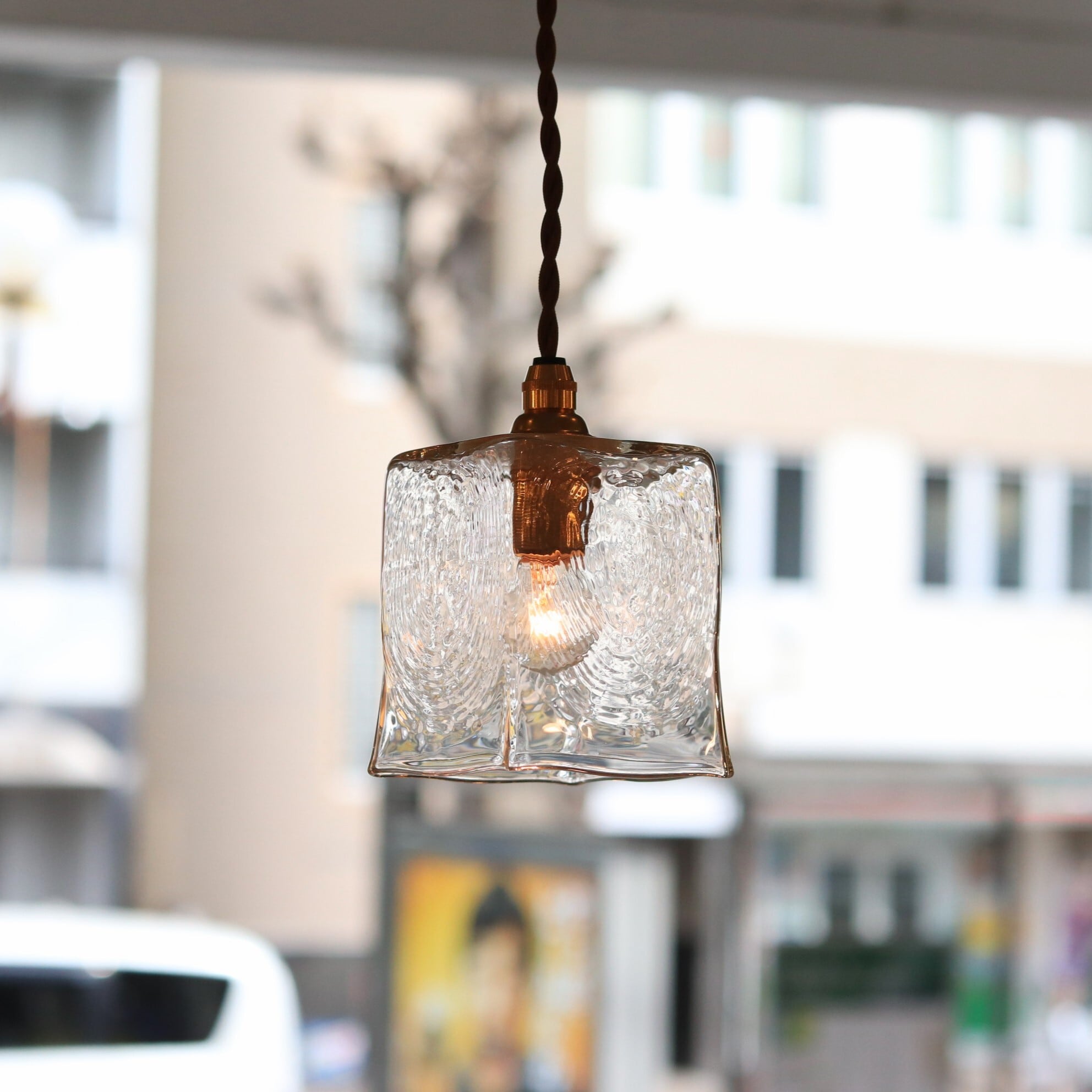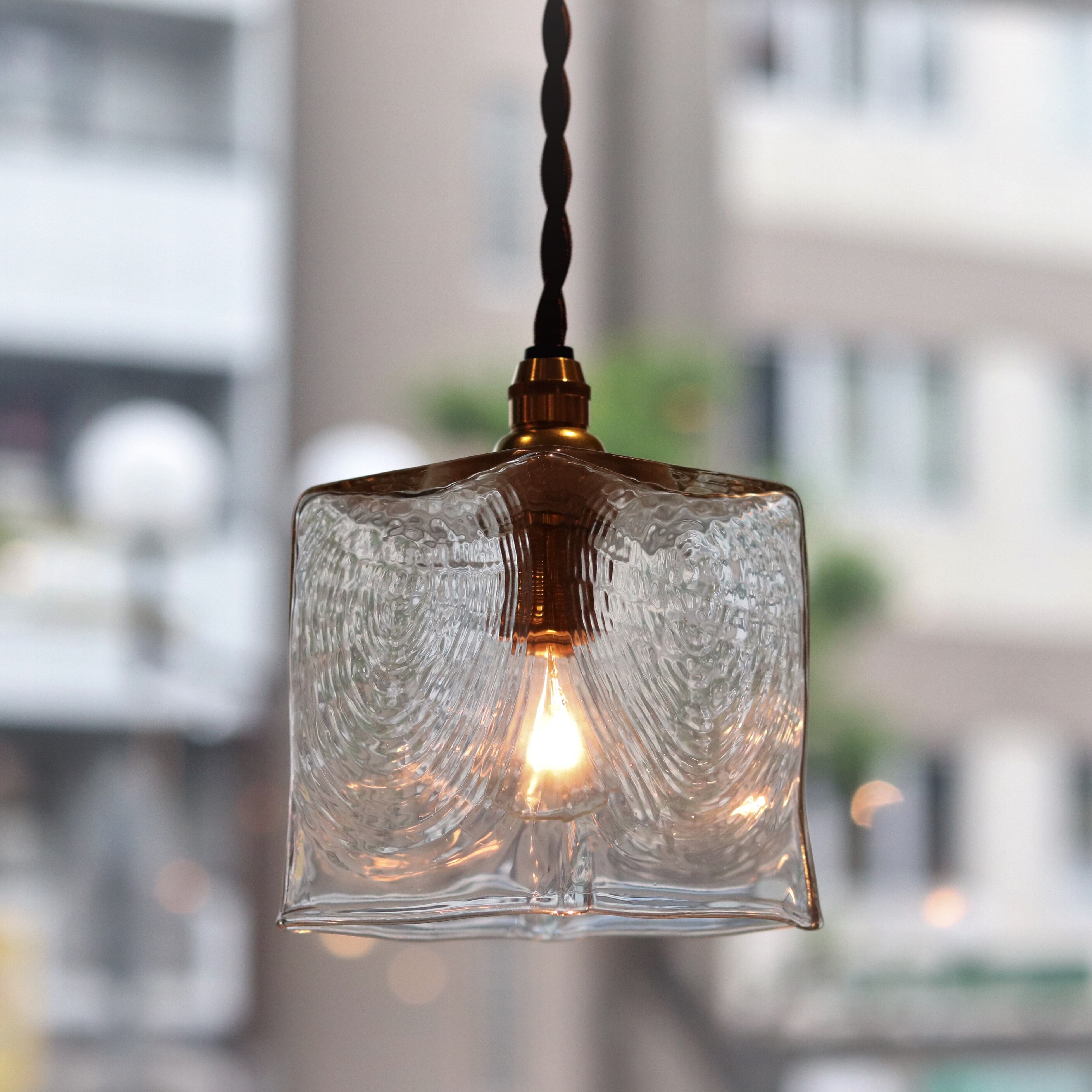 キューブ型のガラスシェードの表面には波打つような模様が広がります。