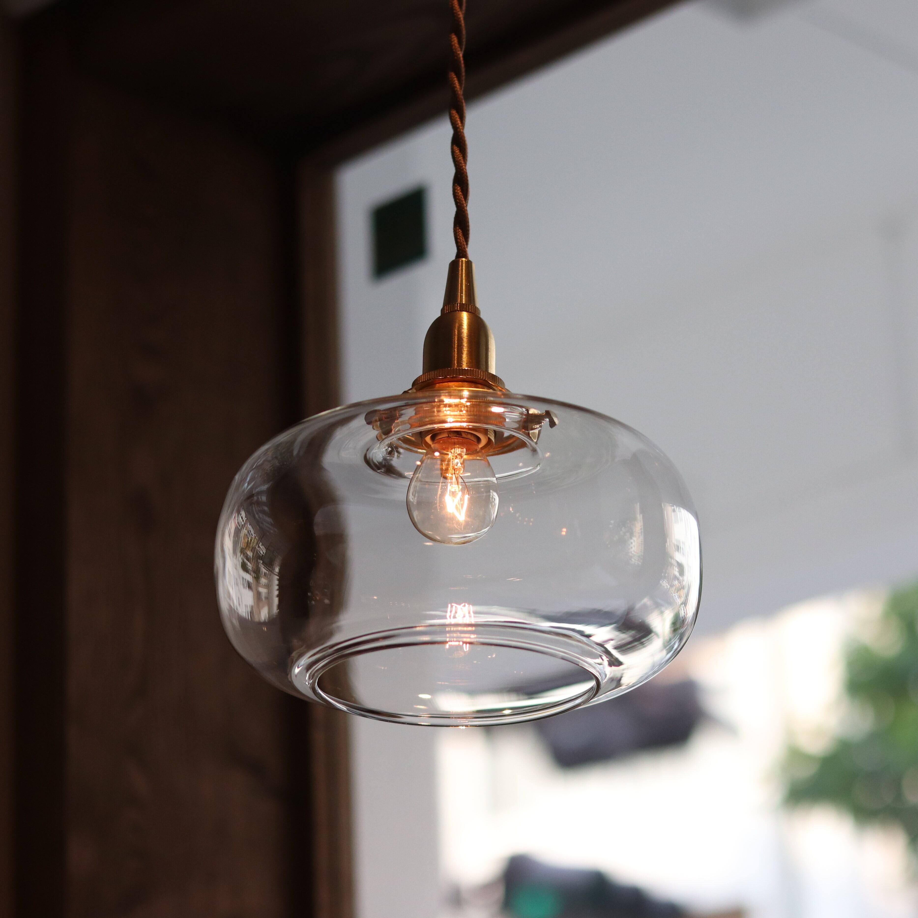 やわらかい曲線と丸みのあるフォルムが優しい印象のガラスシェードです。